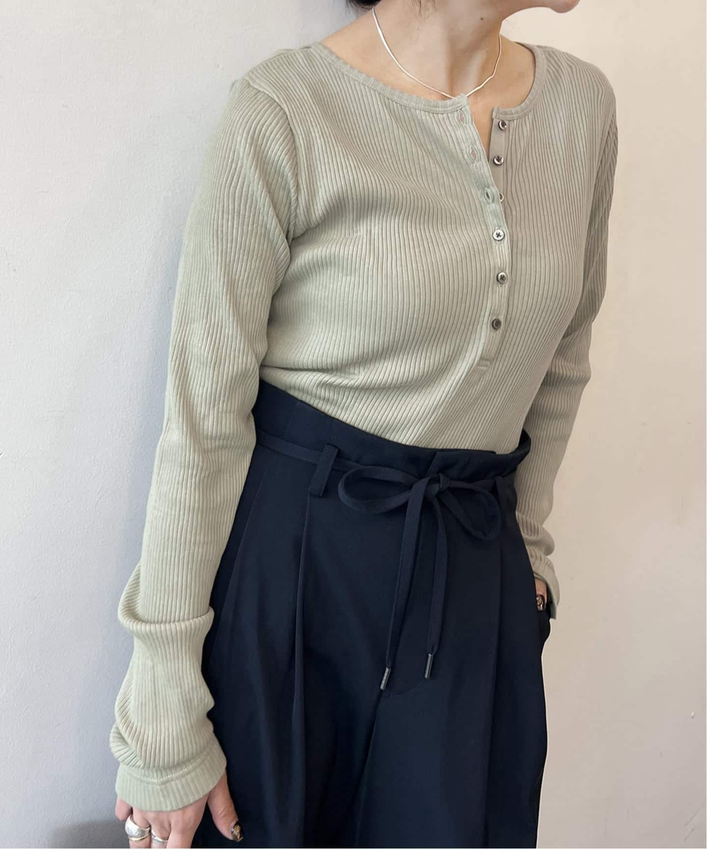 グレーのボトムと合わせて大人な配色でスタイリングを楽しみたいです。