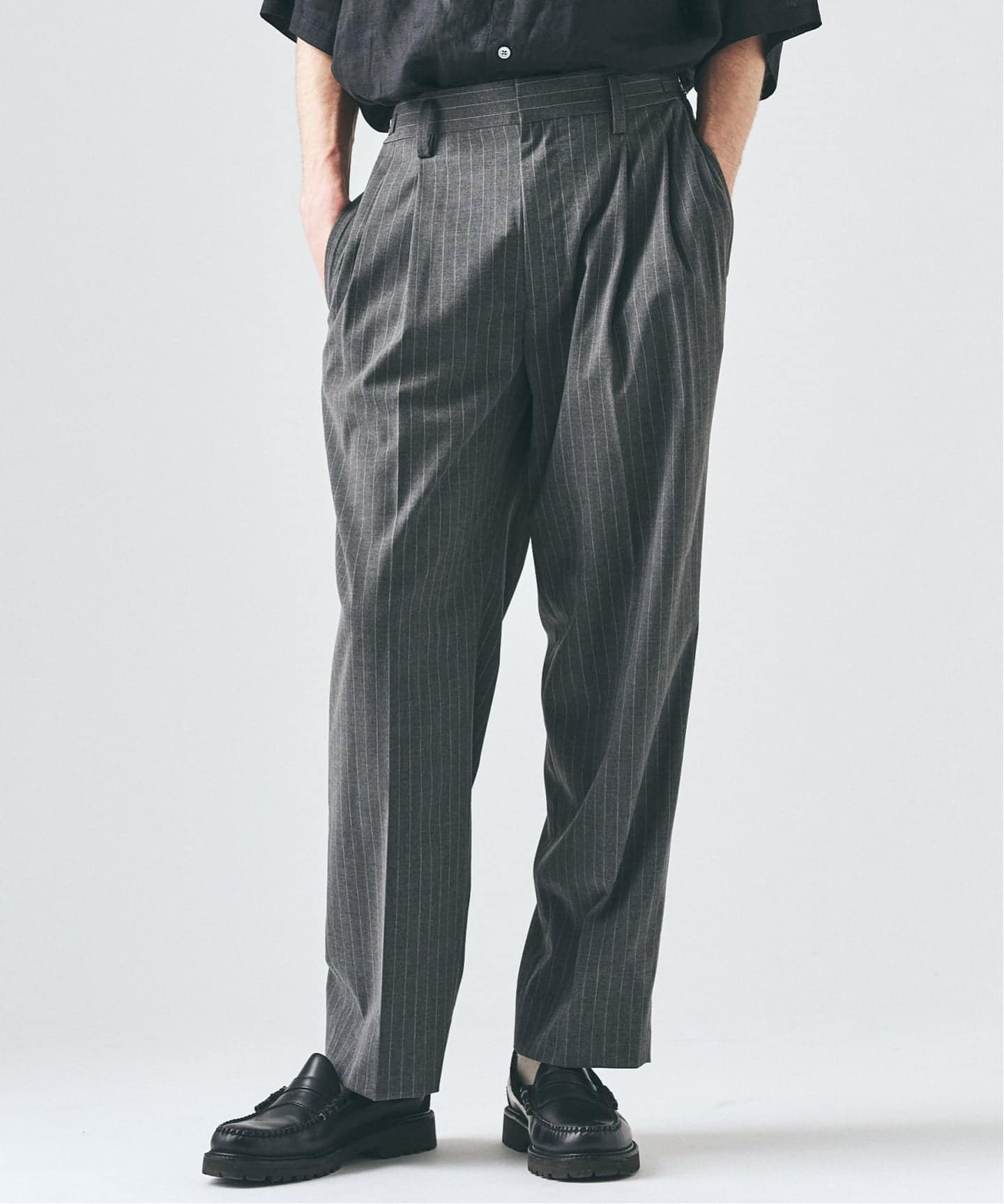 まずはここから。安定して選ばれている一本。程よいワイドシルエットと2タックのバランスで、穿くだけでスタイルが整う。きれいめにもカジュアルにも振れる汎用性の高さもポイント。“とりあえずこれでいい”と思える安心感が、人気の理由です!
