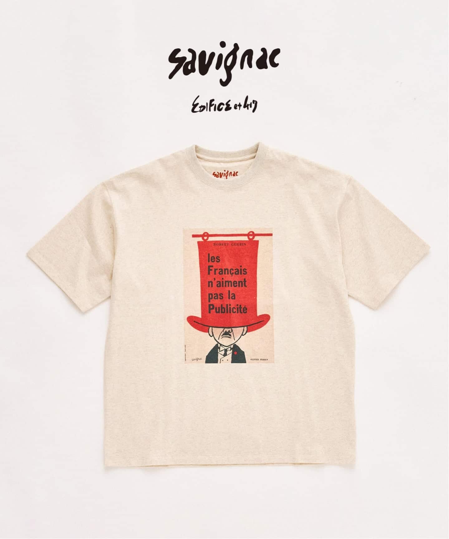 一枚で空気感をつくる、グラフィックT。SAVIGNACらしい遊びの効いたデザインが、スタイリングに程よいアクセントを加える。夏に差がつく、主役の一枚です。