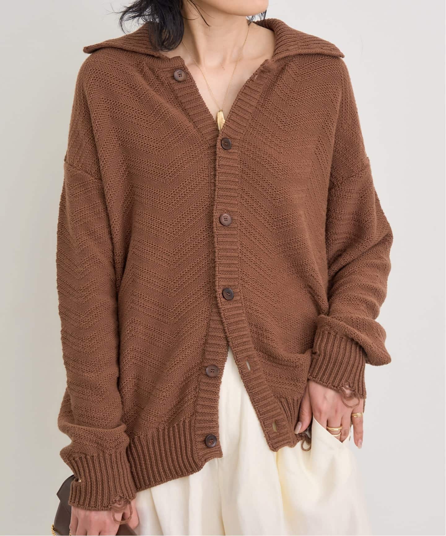 ざっくりとした編地と裾に入ったダメージ加工がラフなカーディガン。