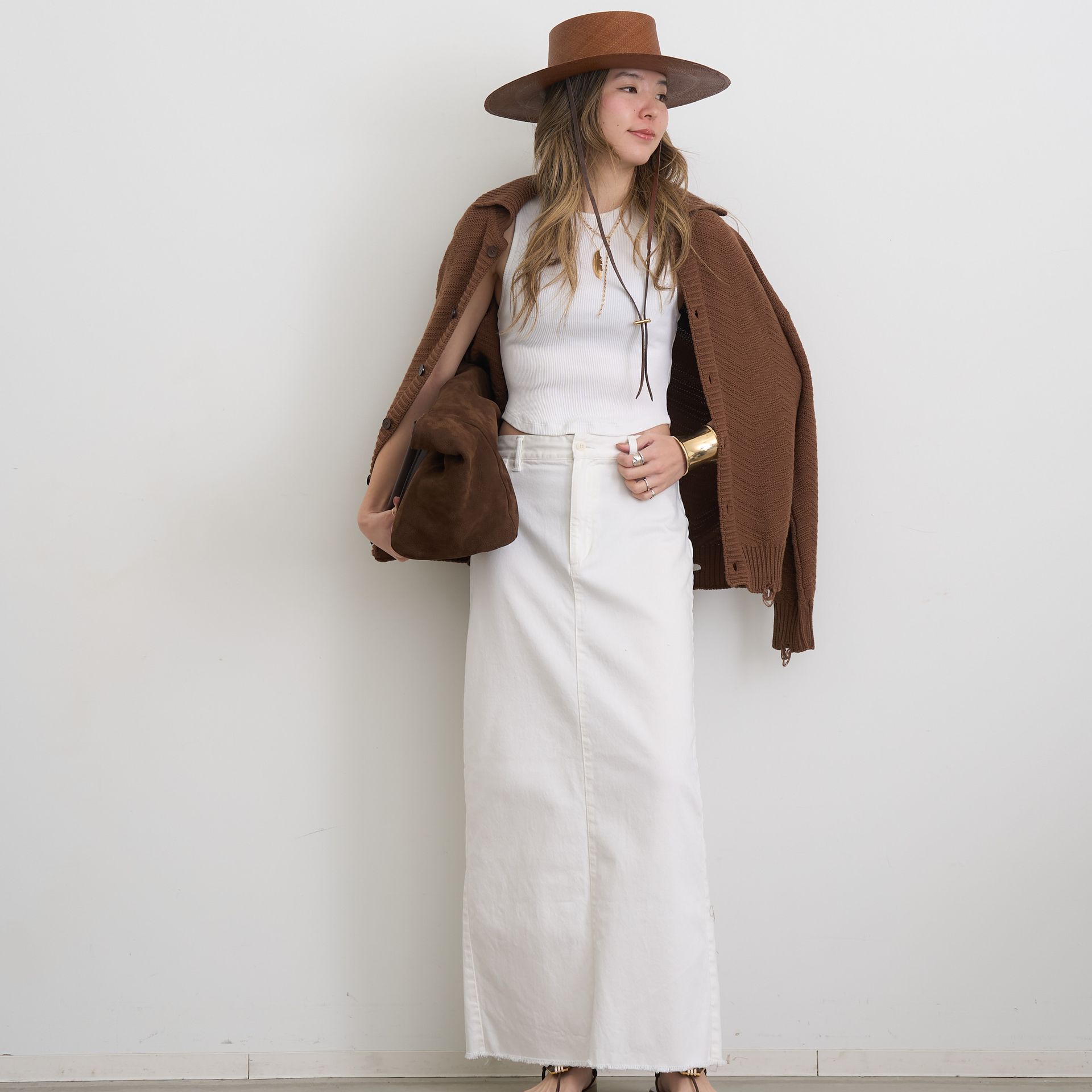 シンプルなスタイルこそアクセサリーやバッグ次第で表情が変わります。