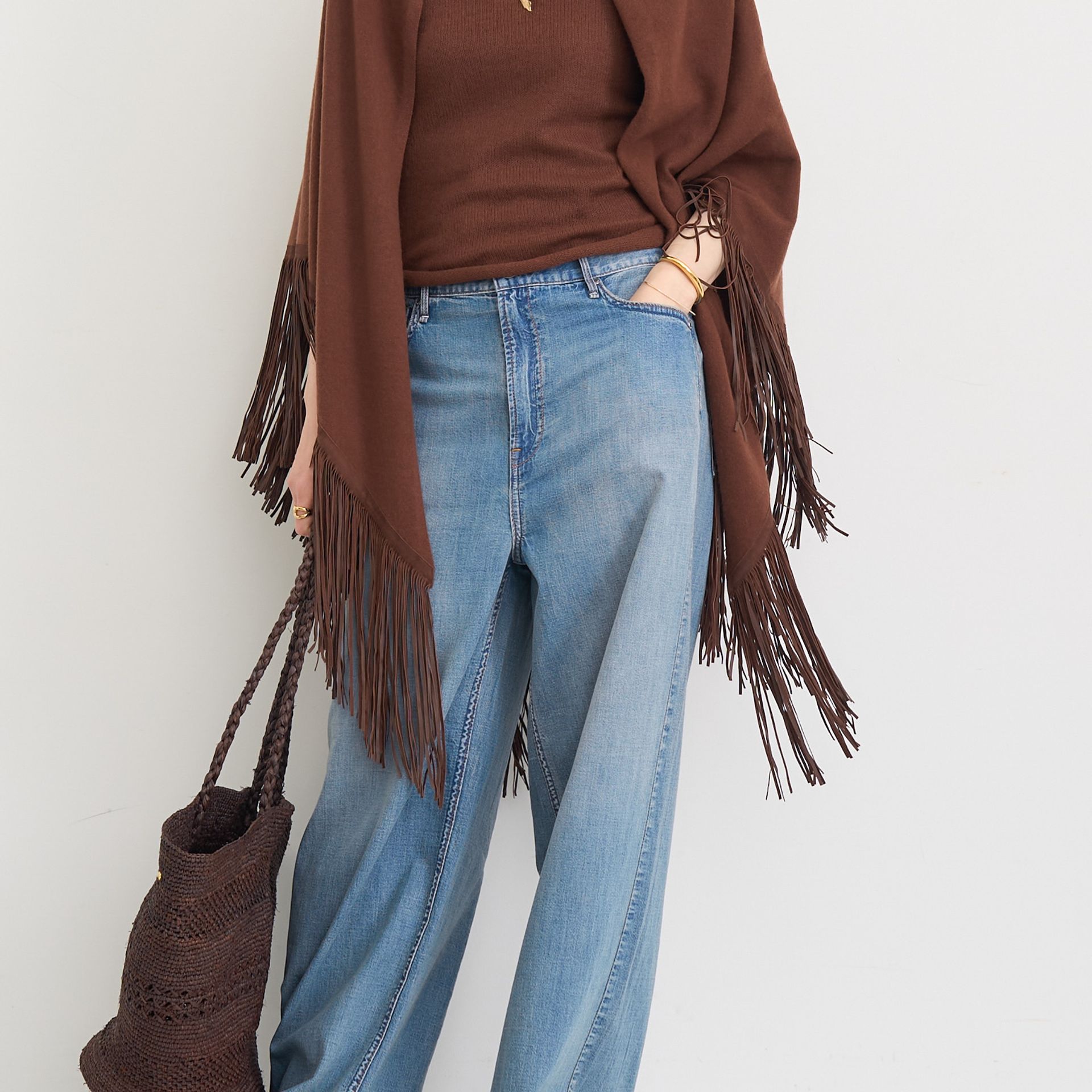 纏うだけで雰囲気が出る“ELY ELY”の上質なカシミヤストール。優雅に揺れるフリンジが新しいシーズンの気分を盛り上げる。