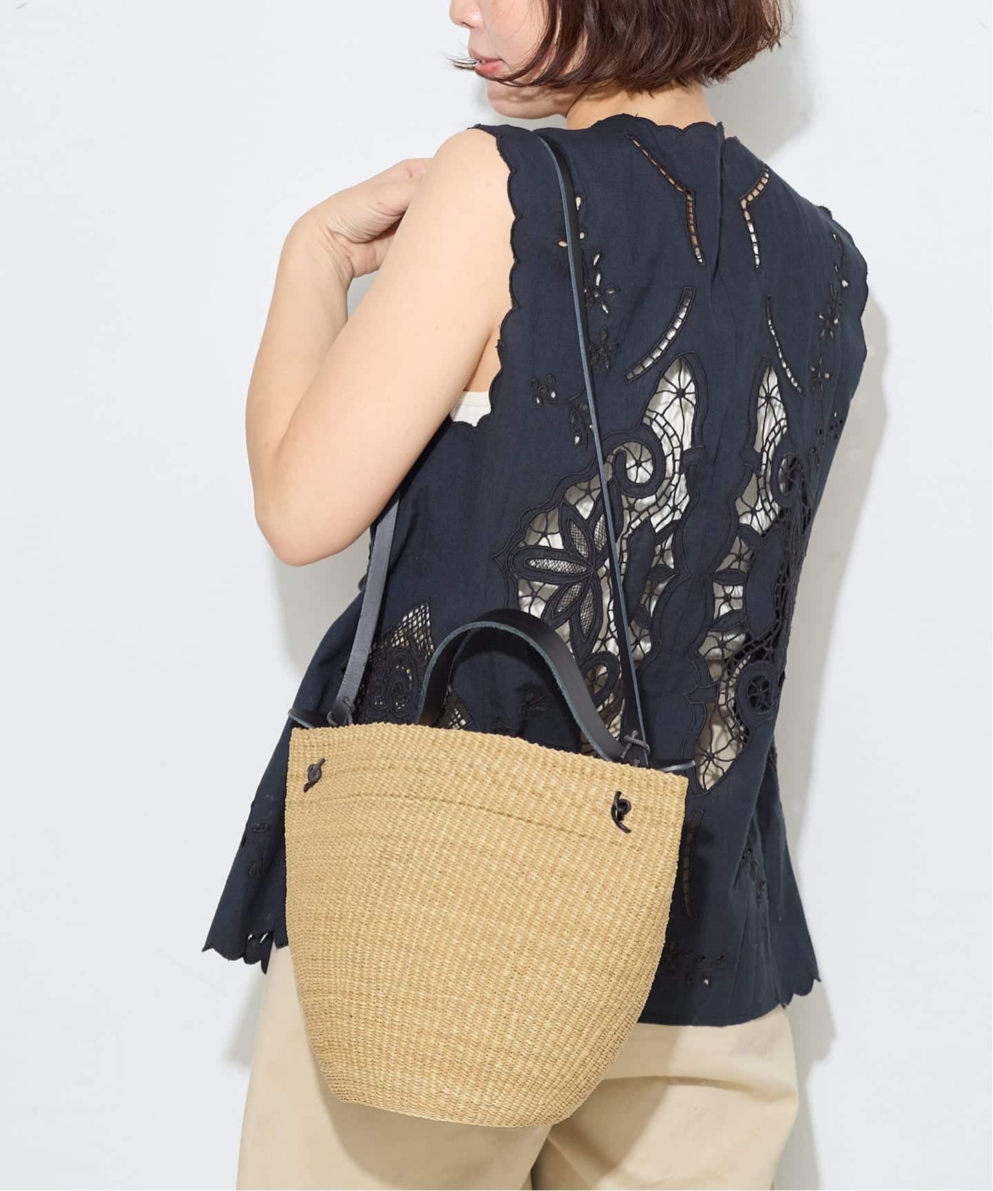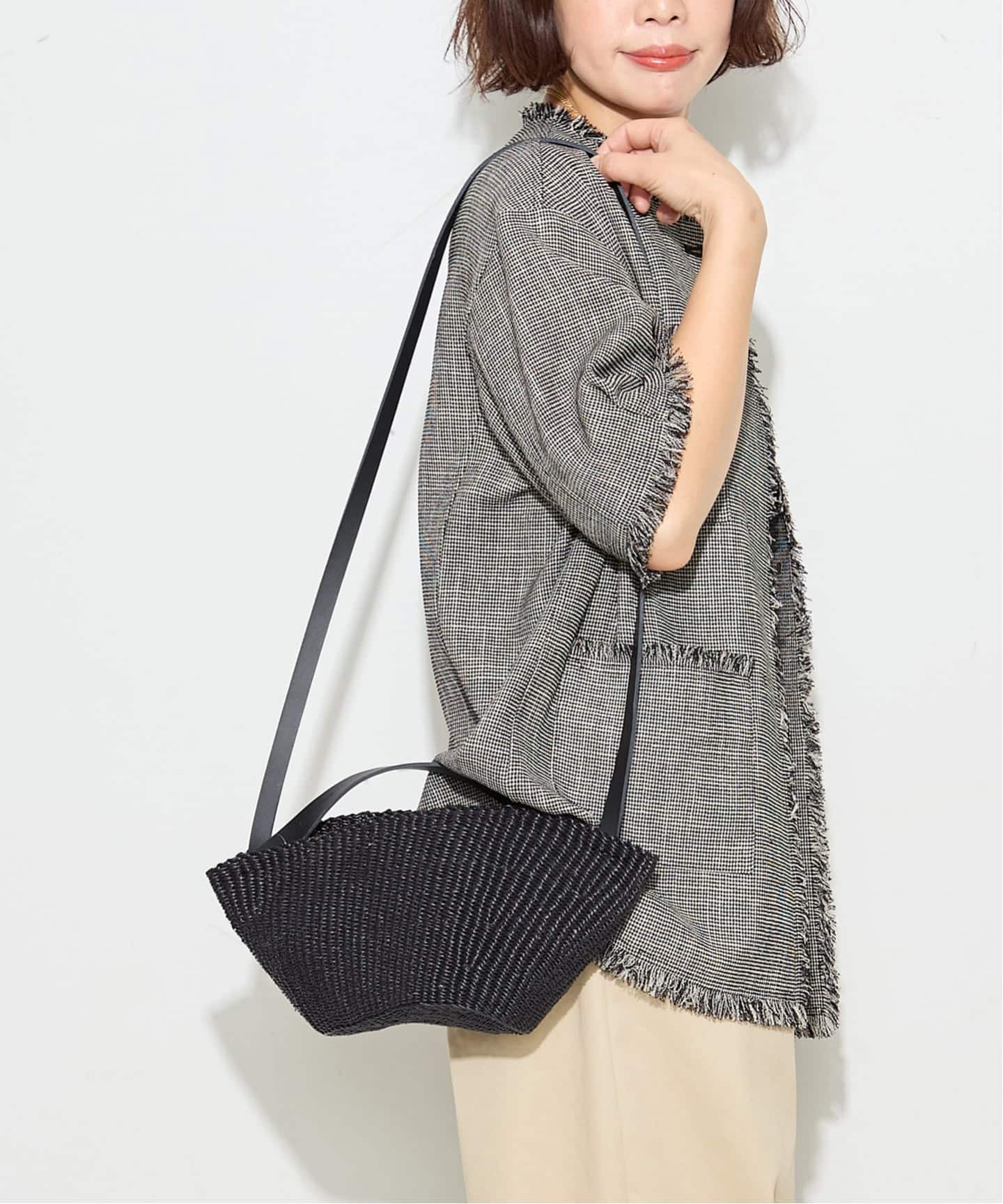 ブラックはより洗練された印象で、かごバッグでも都会的に持っていただけます。