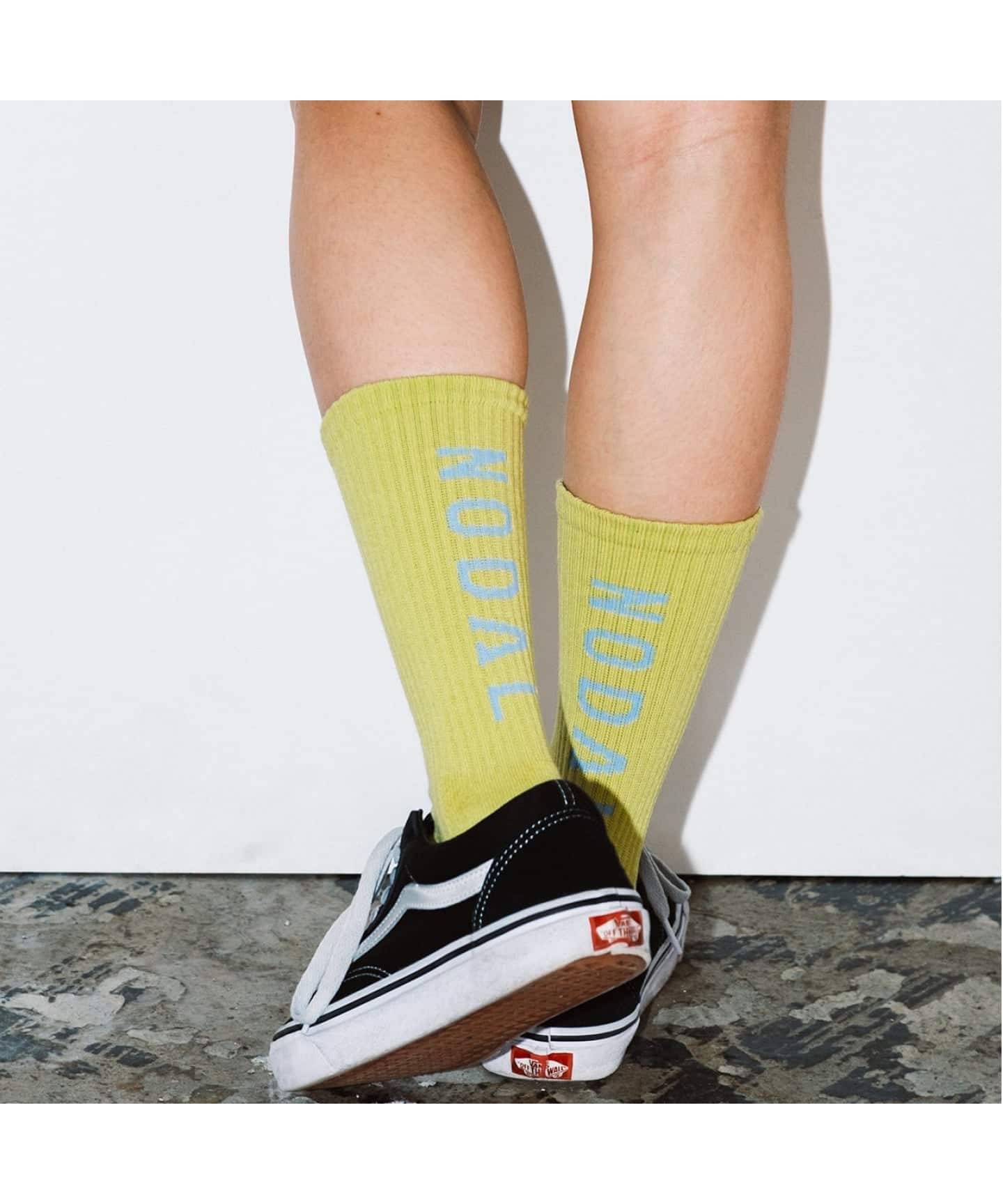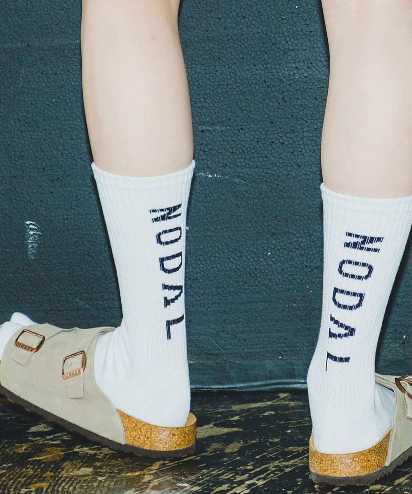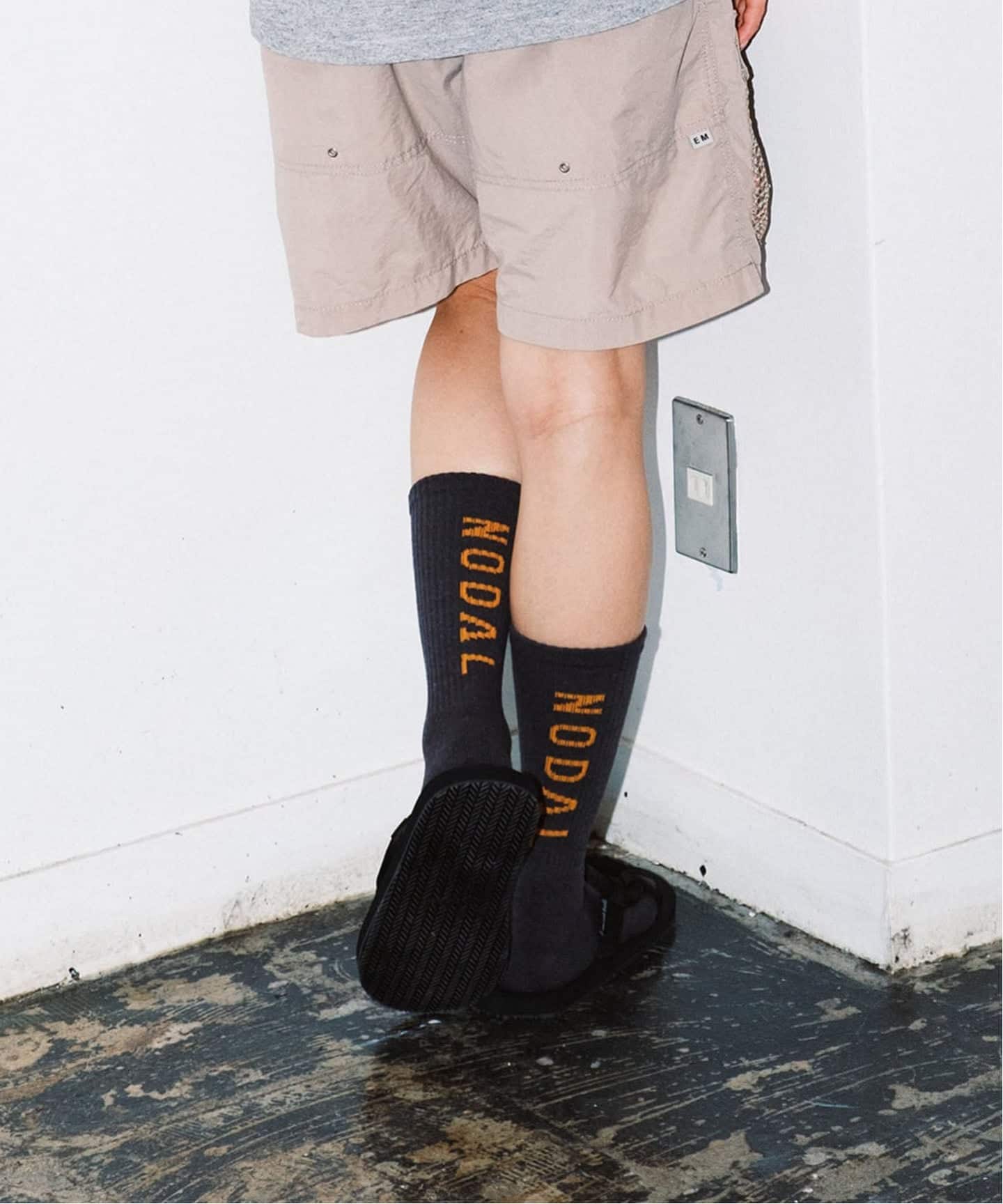 背面に「NODAL」のロゴをあしらった、ブランドを象徴するアイコニックなソックス。