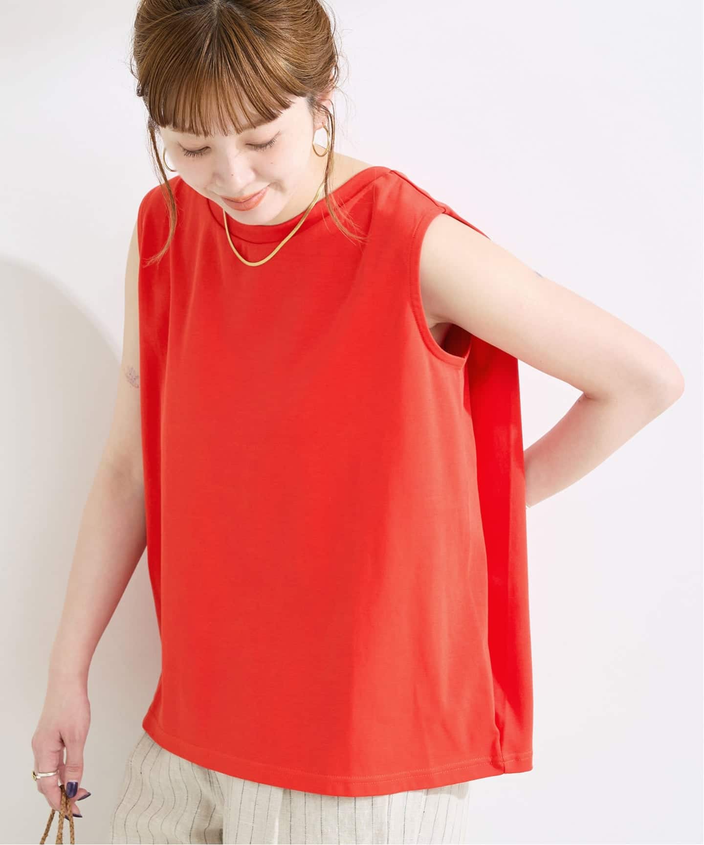 接触冷感機能性付きのノースリーブタイプのボックスTEE。新色のレッド(060)カラーを加えて登場。