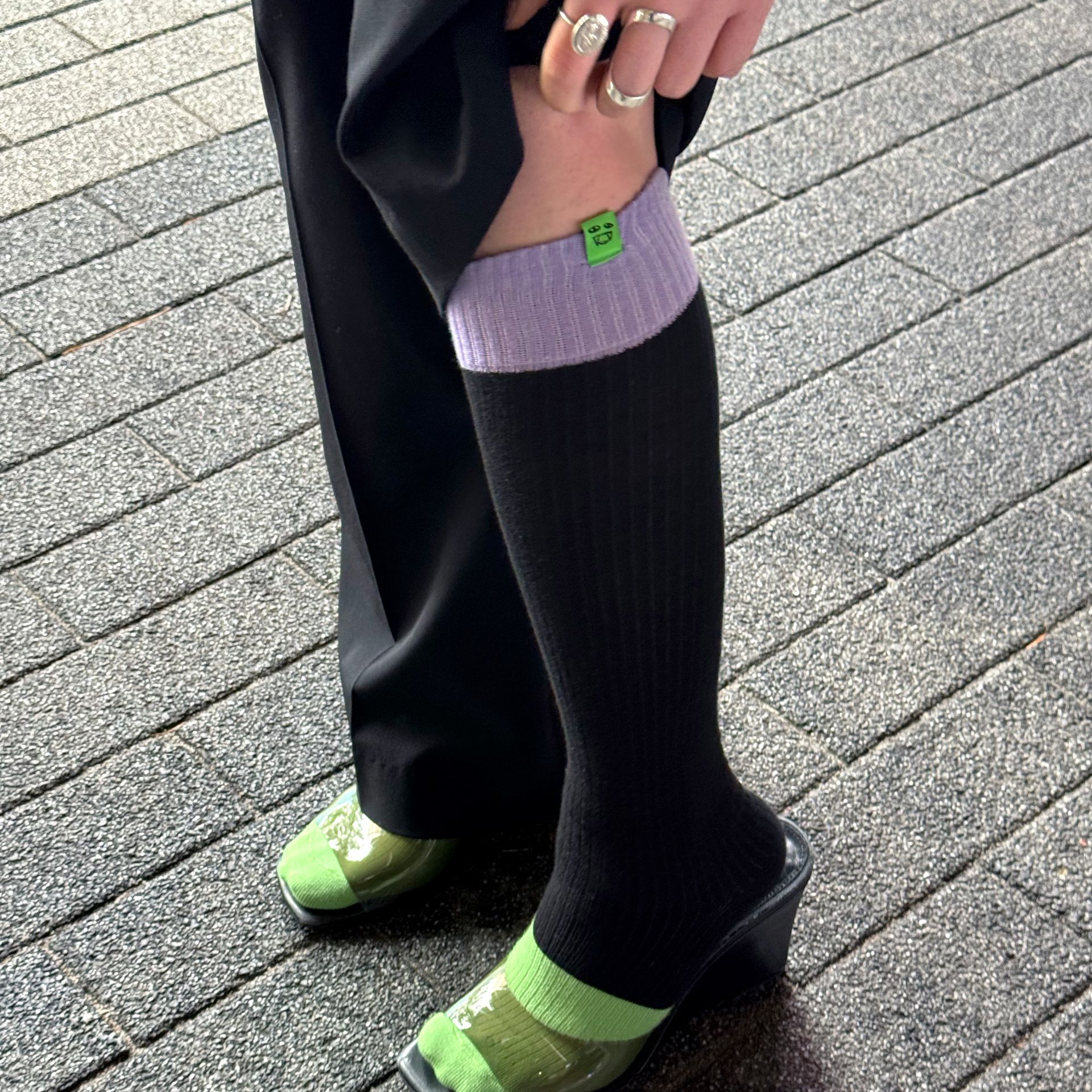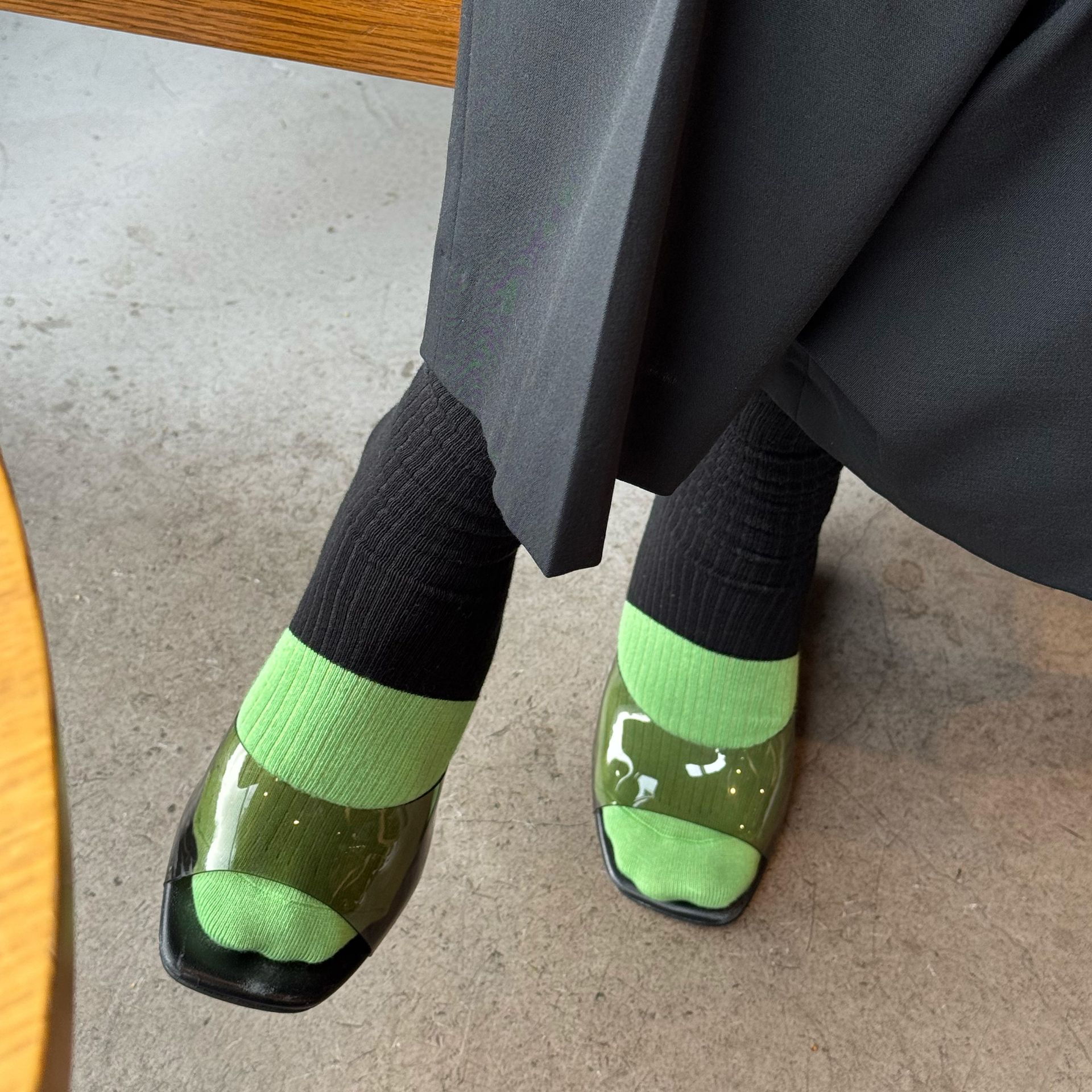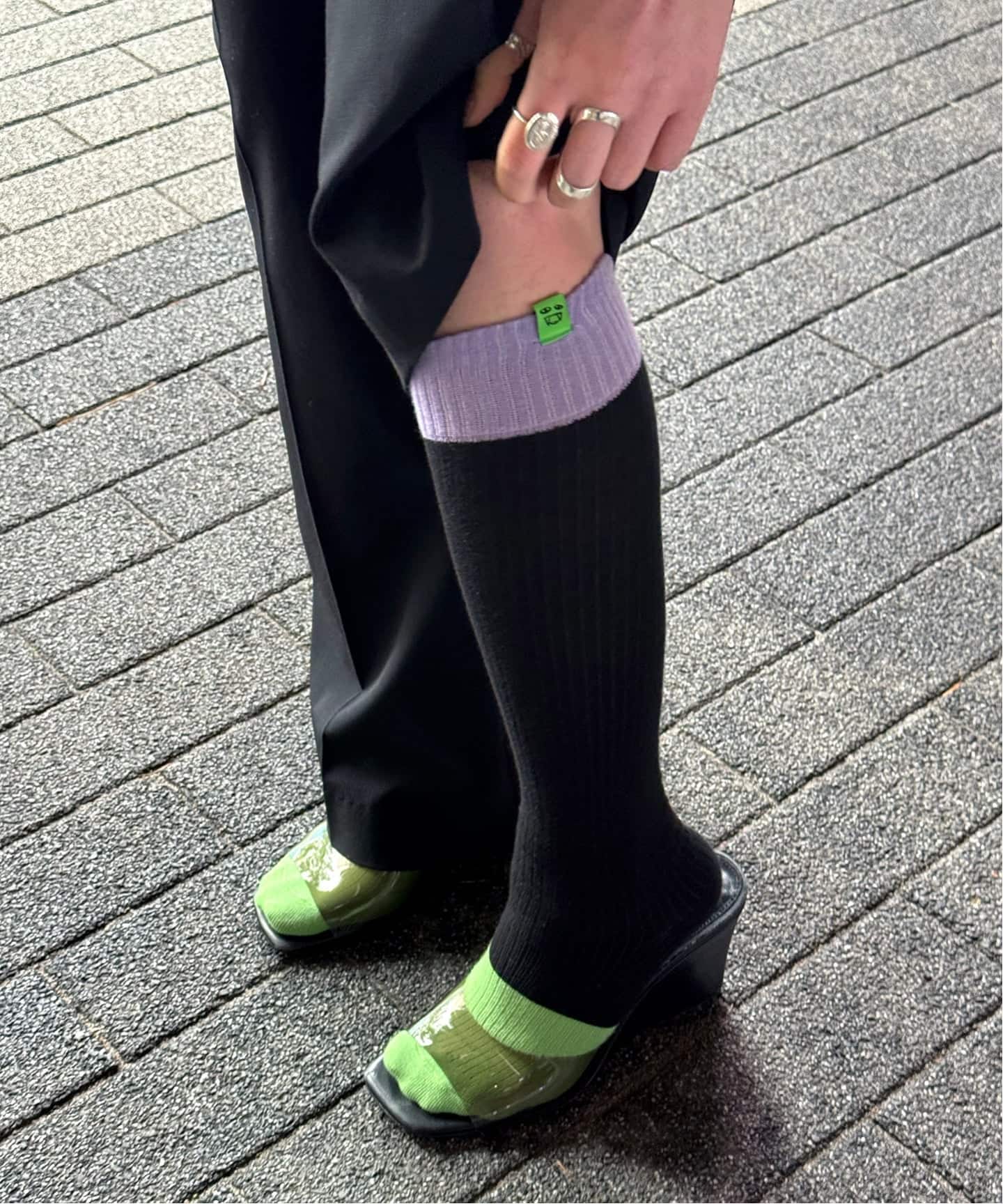 つま先とリブにシティモンカラーを効かせた、マルチカラーのハイソックス。
