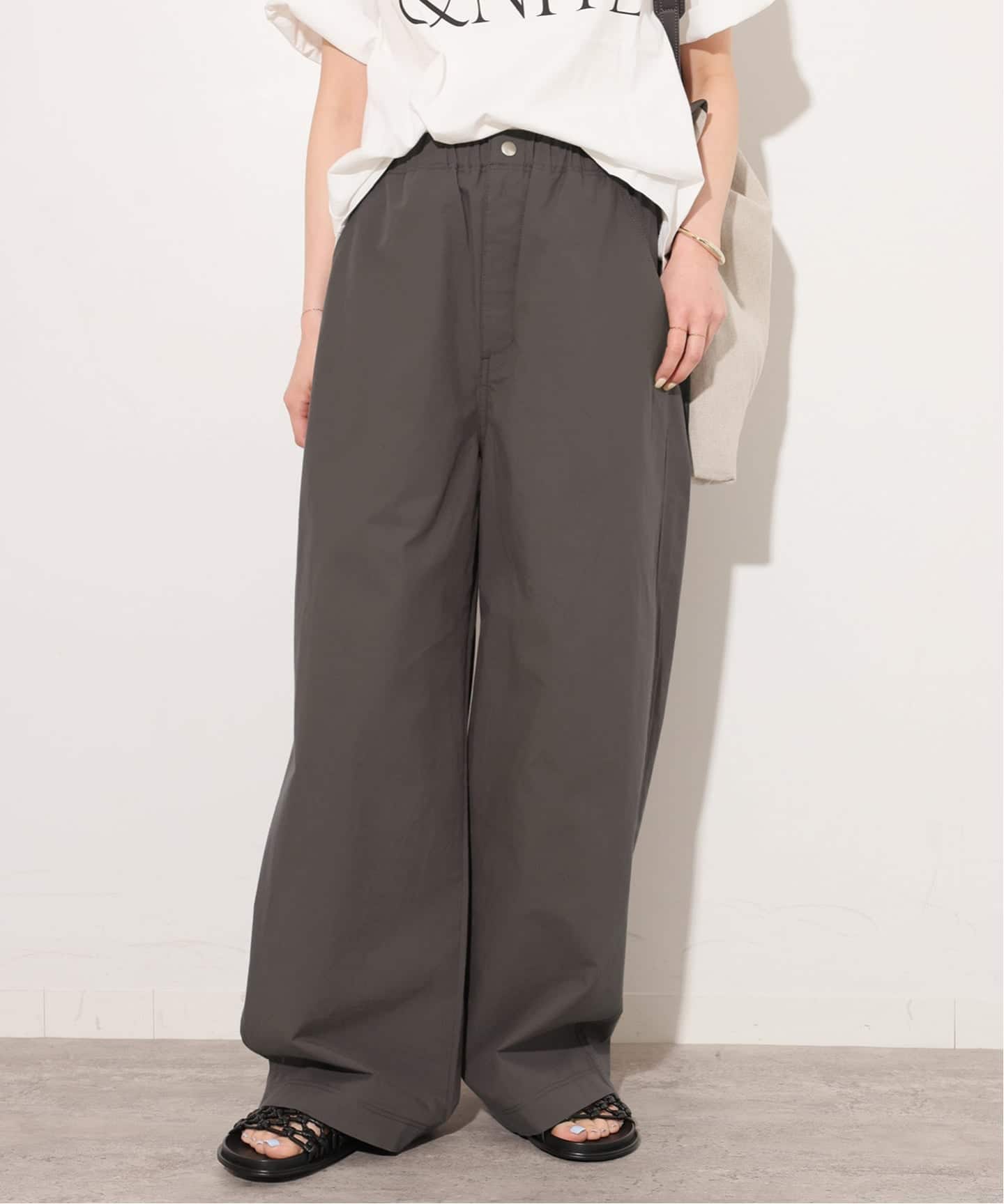 |リネンコットンワイドギャザーパンツ