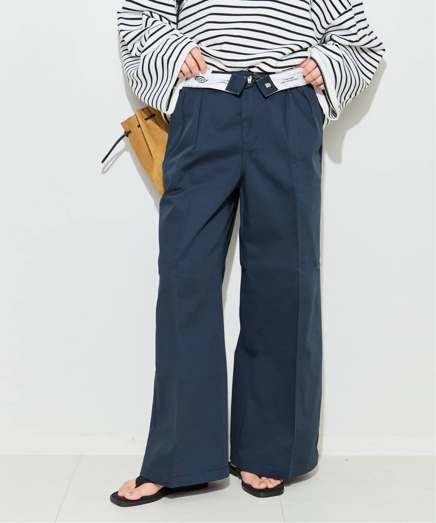 腰帯裏にはDickiesとJOHN MASON SMITH JANE SMITHのロゴをプリント。膝幅から裾にかけては広めに設計し、リラックス感のある特徴的なシルエットに仕上げました。
