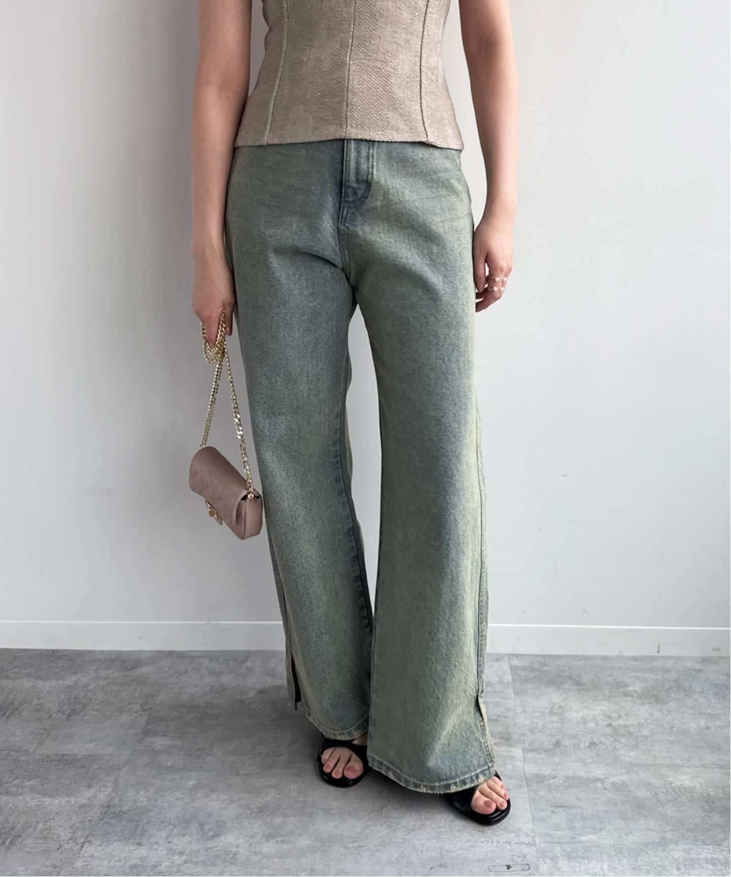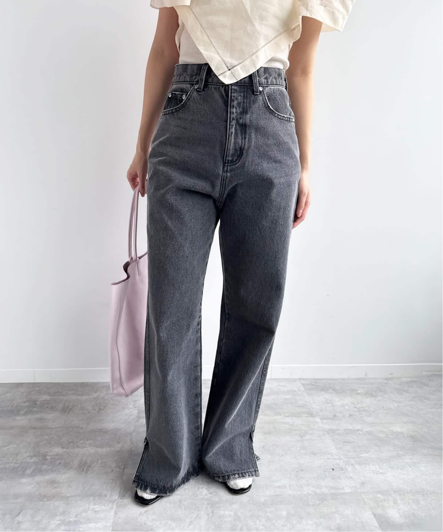 身体のラインをきれいに見せながら、抜け感のあるシルエットに仕上げています。フロントのボタンがほどよいアクセントになり、シンプルながらも1枚で様になるバランスに。