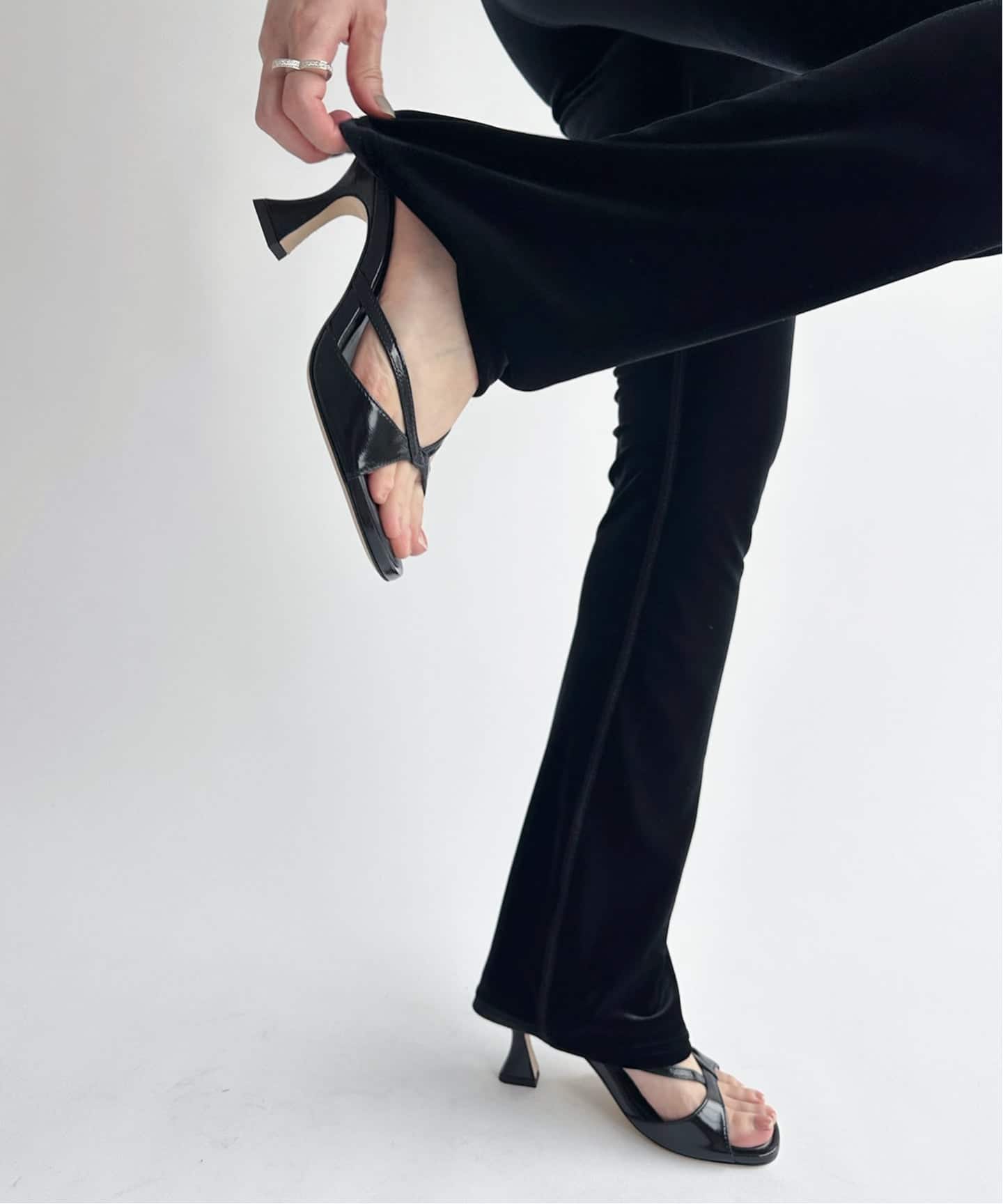フェミニンなラインが特徴のヒールサンダル。
