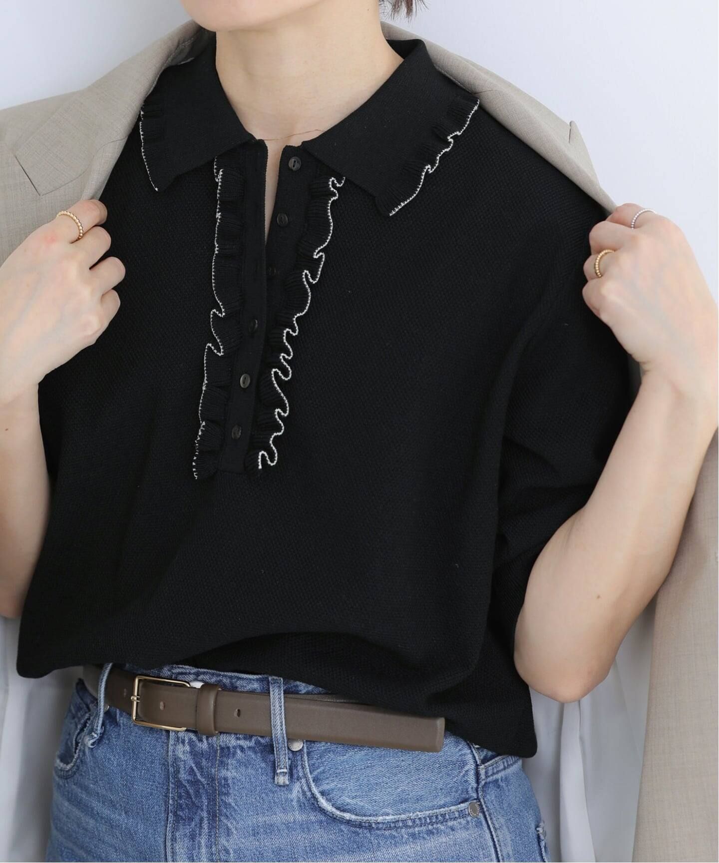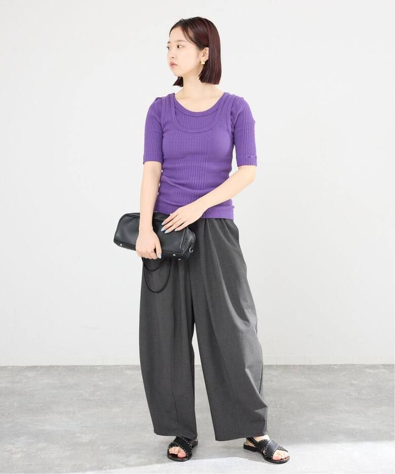 さりげないフリルと無縫製仕様による快適さで、羽織りのインナーにも一枚着にも活躍する一着です。