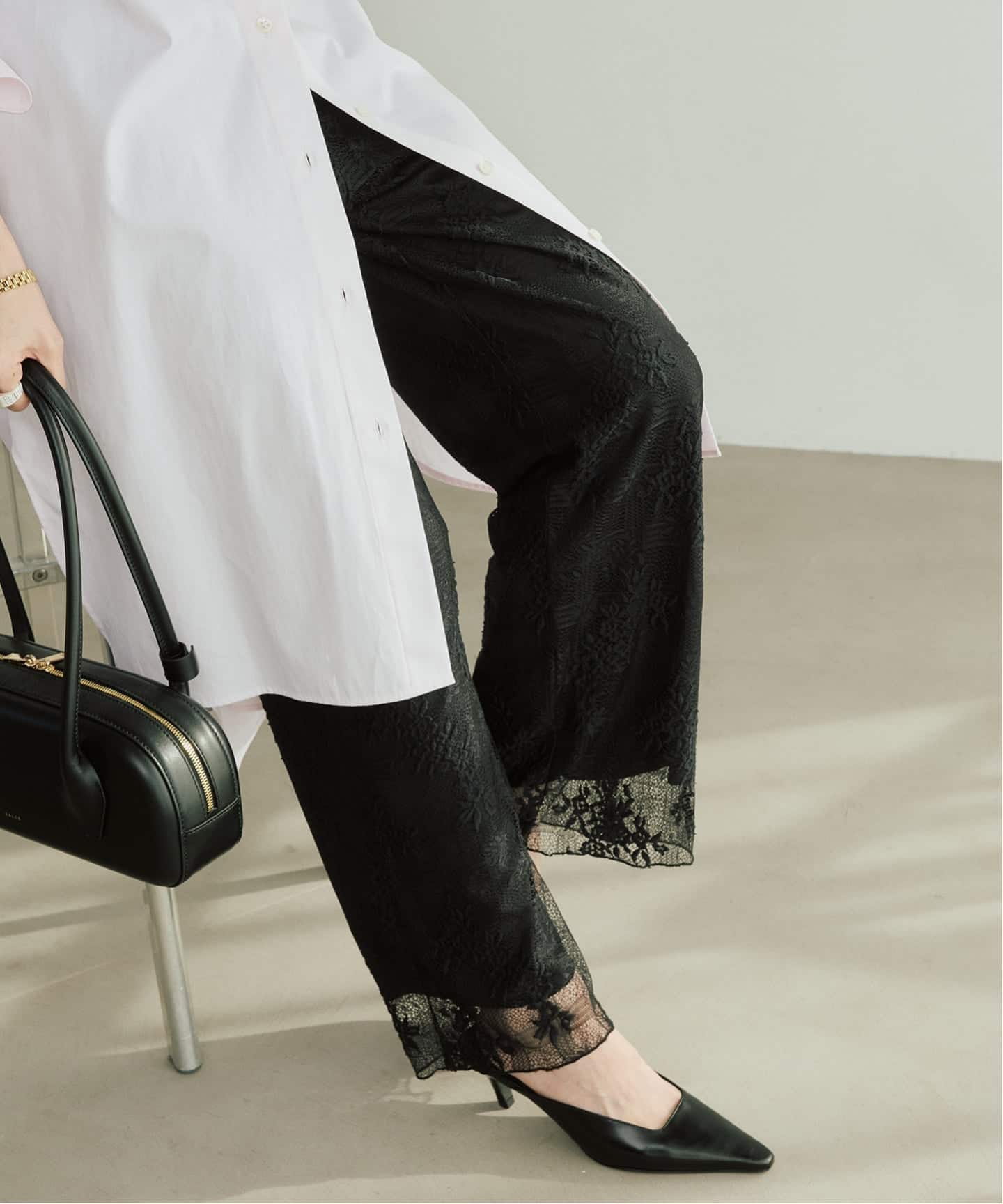 FLAXASA jewel ox 素材ならではの程よいハリと落ち感を活かし、立体的に設計されたウエストラインが、身体のラインを静かに導くようにフィットします。