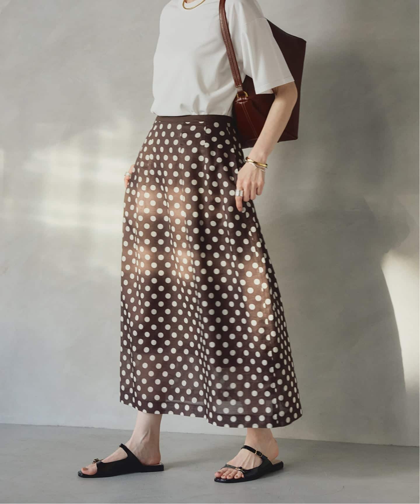 柄を足すというより、“雰囲気を足す”感覚で取り入れたい、今のワードローブにちょうどいいドットスカートです。