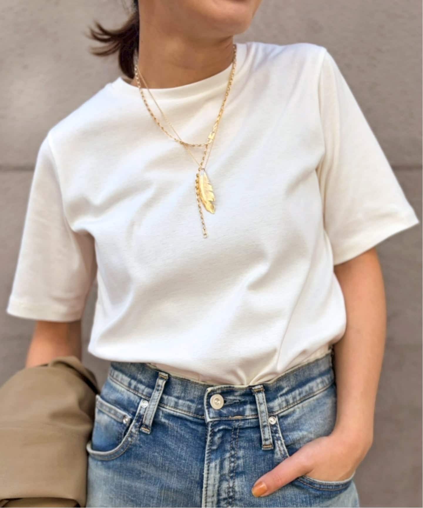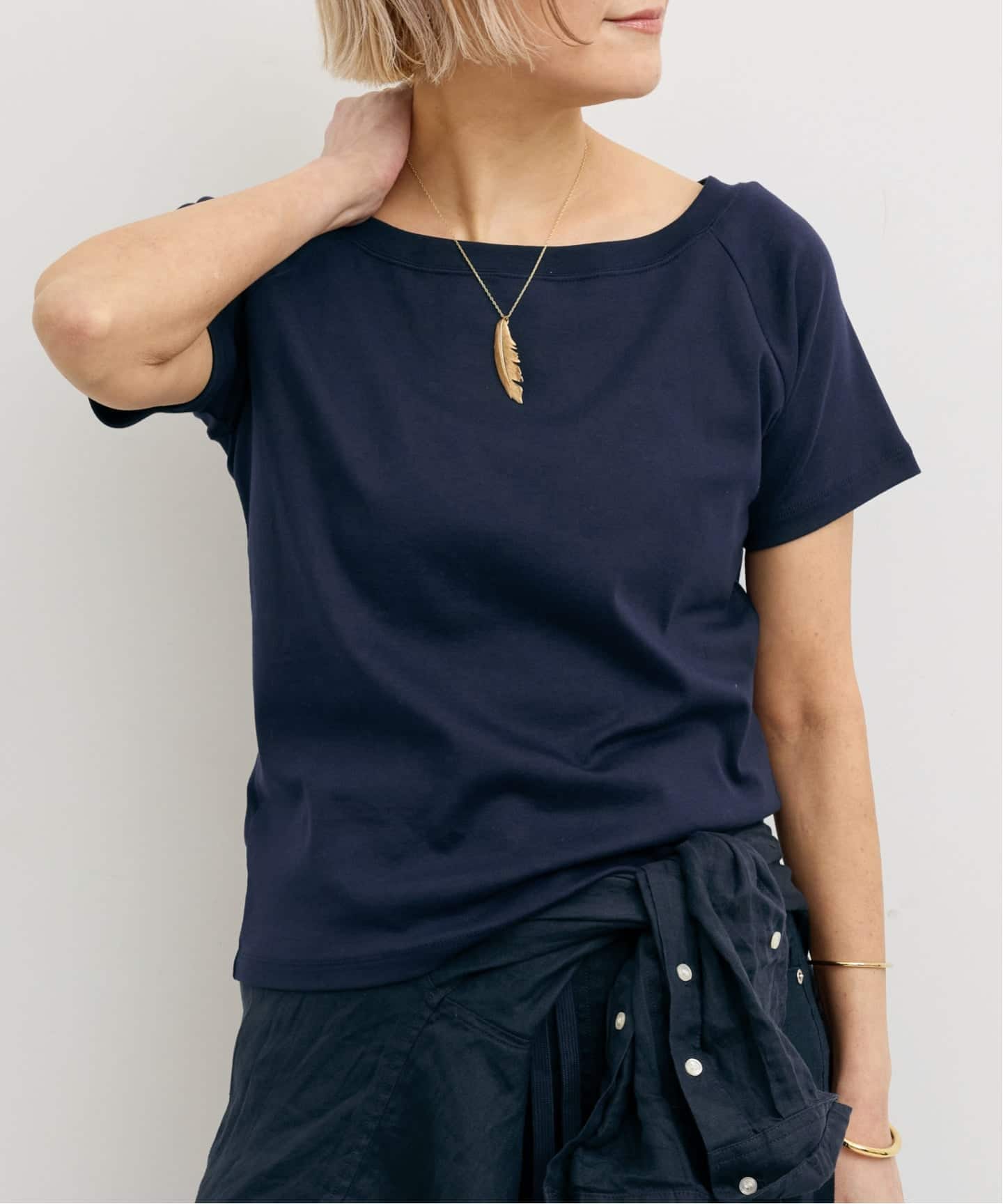 ラグランスリーブでゆとりがありレイヤードしやすく、リラックス感のある着こなしを楽しめます。暑くなったら一枚でも◎