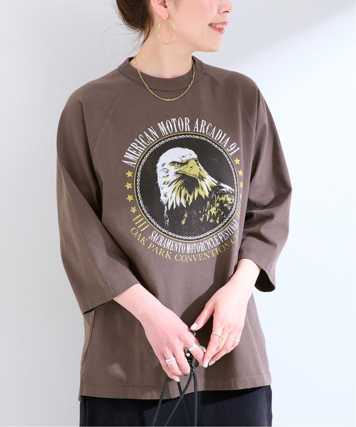 バイクメーカーをテーマに「GOOD ROCK SPEED」がオリジナルグラフィックを施した、顔料染めの7分袖ラグランスリーブTシャツ。