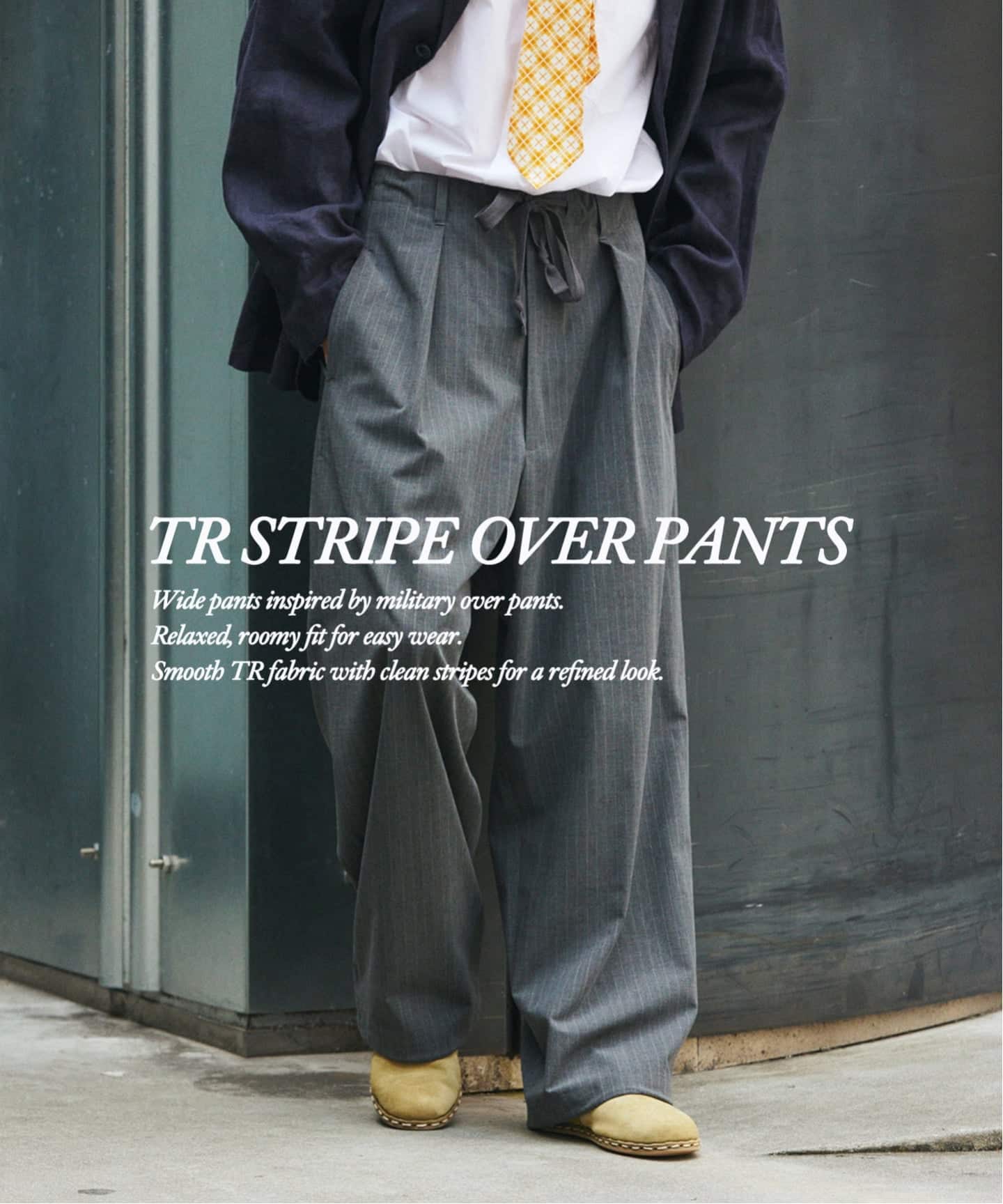 程よい光沢と落ち感のあるTR素材で、ラフなのに上品に見える一本。