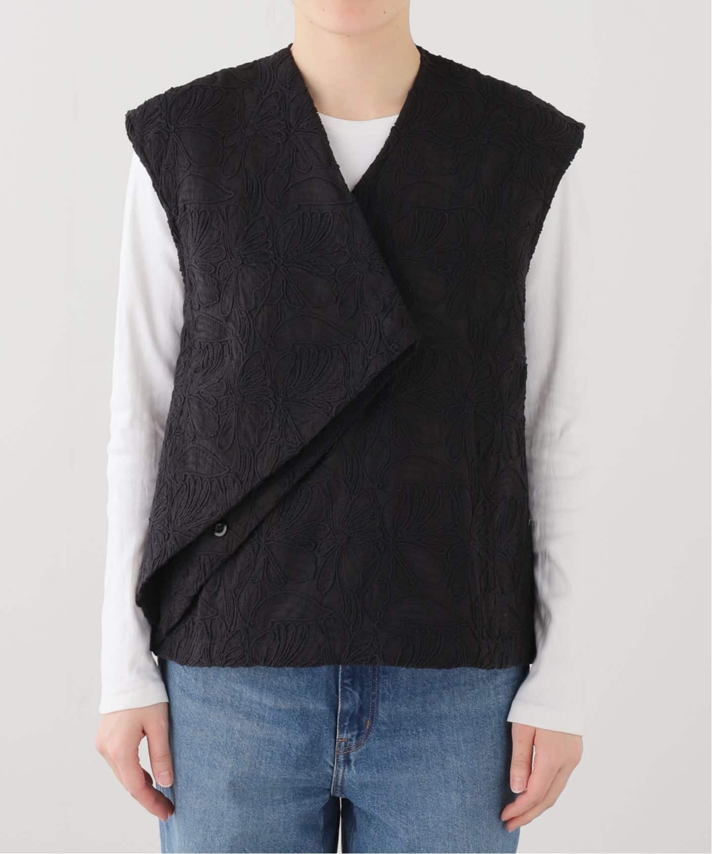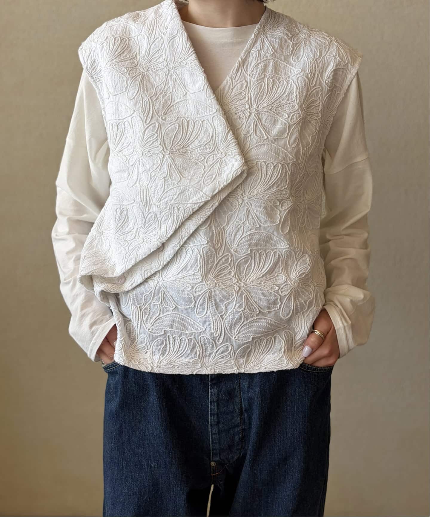 NEWモデル!生地全体に複雑な葉模様の刺しゅうを施した、インドコットンのスリーブレスブラウス。サイドの裾と首元はZIP開きです。サイドのZIPを開けたり、前のボタンを外して着るなど、多様な着方を楽しめます。