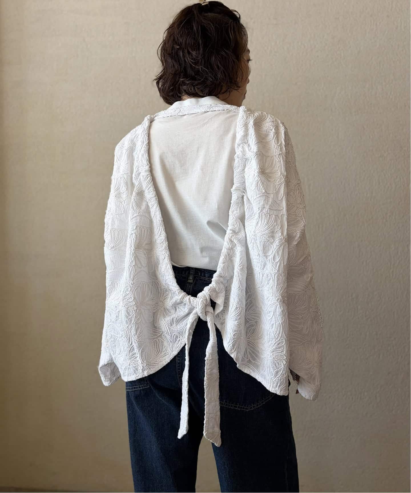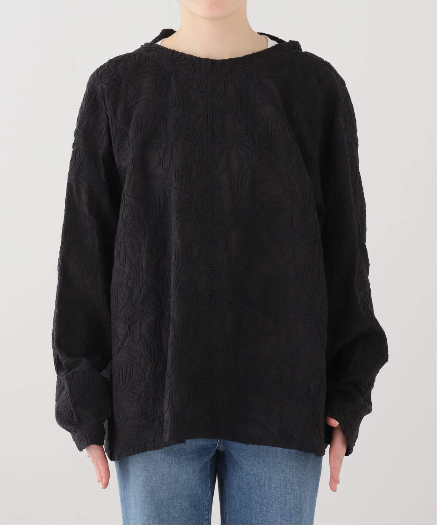同じく生地全体に複雑な葉模様の刺しゅうを施した、定番モデルのバックギャザープルオーバー。