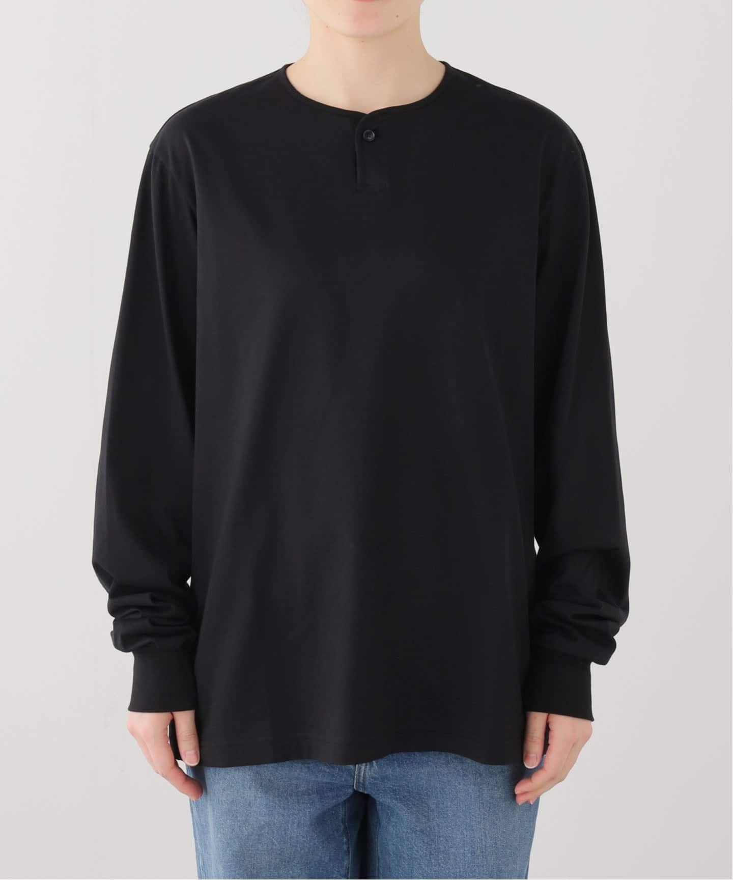 同じくSEEALLオリジナル素材のスビンコットン天竺を使用した、一つボタンのヘンリーネックロングスリーブTシャツ。