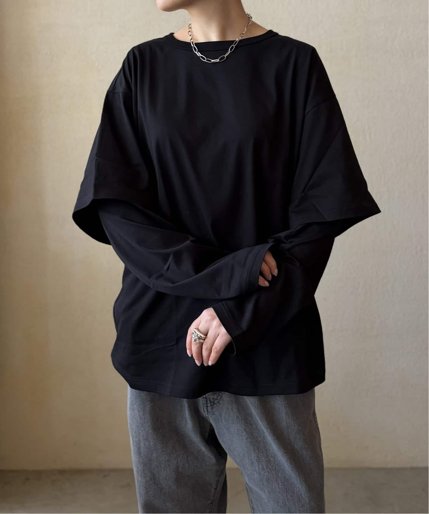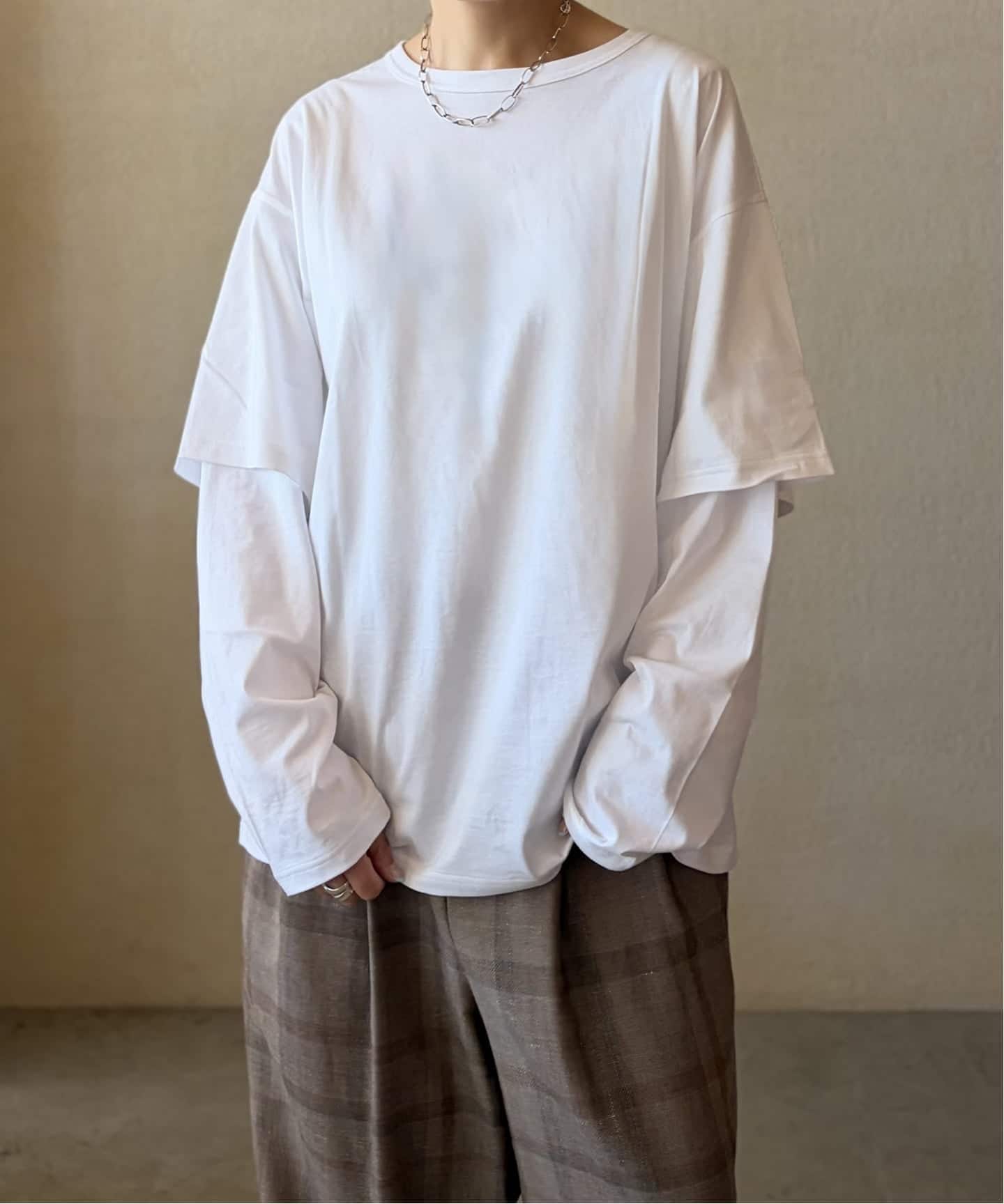 SEEALLオリジナルのスビンコットン天竺を使用した、ロングスリーブのレイヤードTシャツ。スビンならではの滑らかな肌触りが特徴。