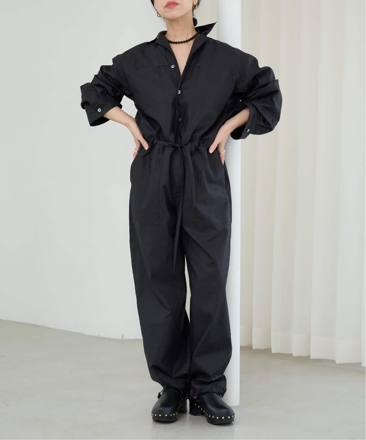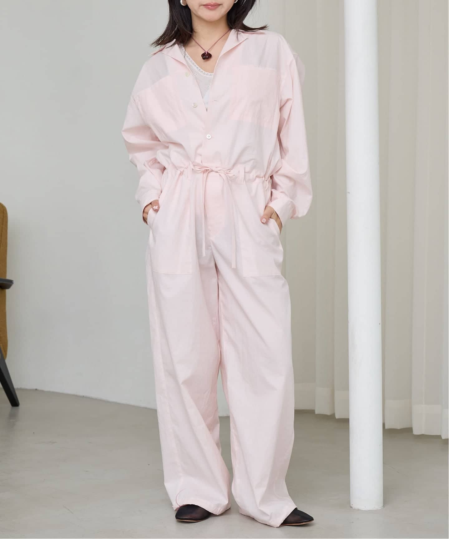 長袖のストレートシルエットが、マニッシュな雰囲気の中に女性らしさを感じさせるデザイン。