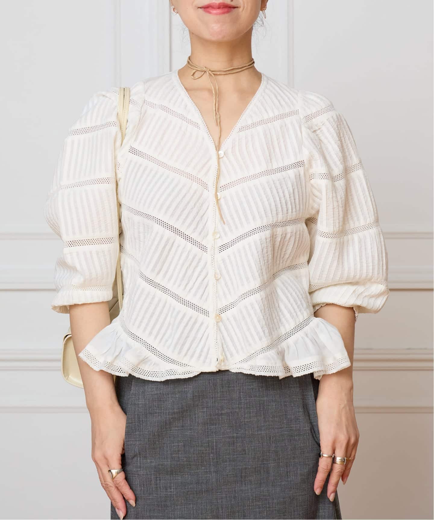 繊細ピンタック×レースの立体美。涼やかに着映えるタックブラウス。