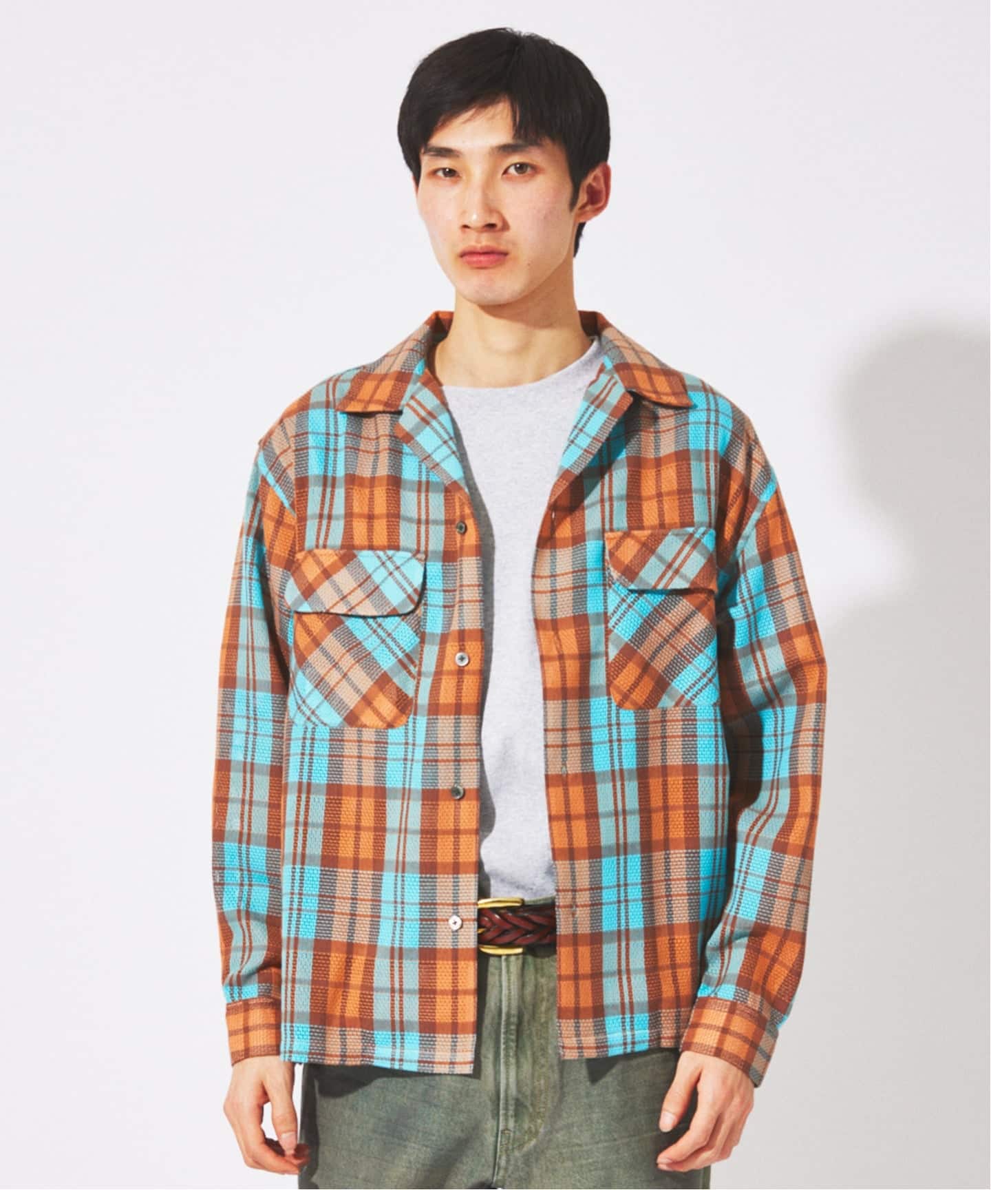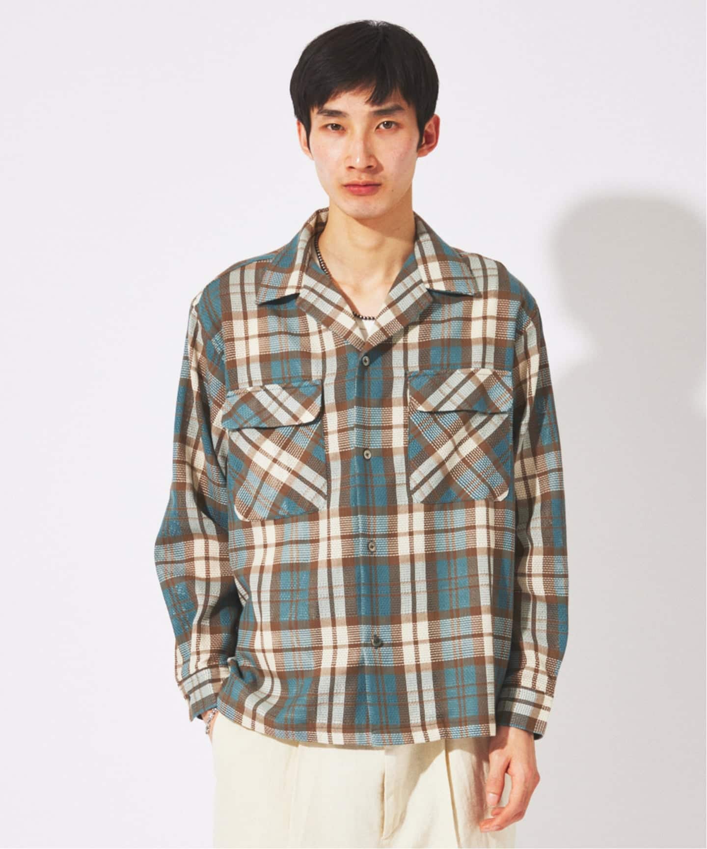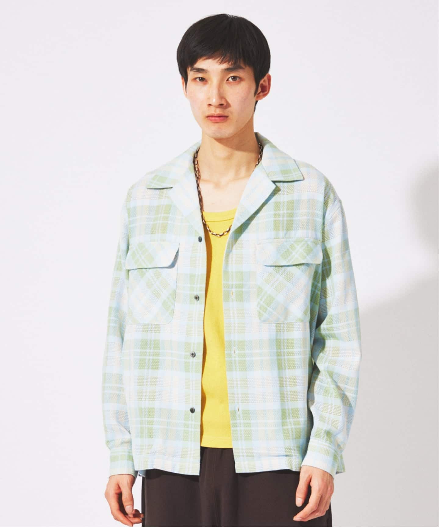エアリーチェック オープンカラーシャツ
