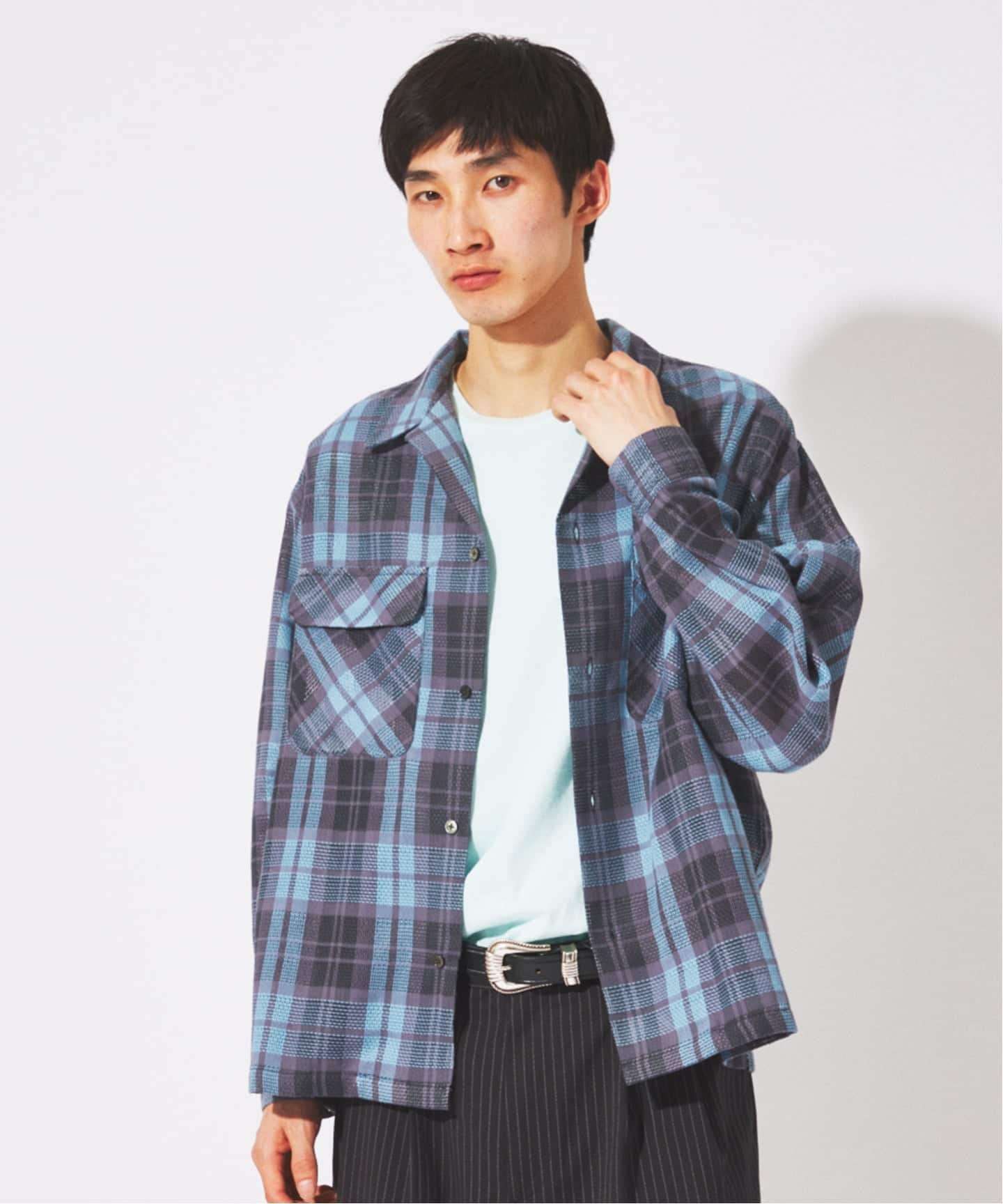 エアリーな着心地で通気性もよく、暑い時期でもストレスなく着られます。清涼感のあるチェック柄とオープンカラーで、自然と季節感のあるスタイルに。