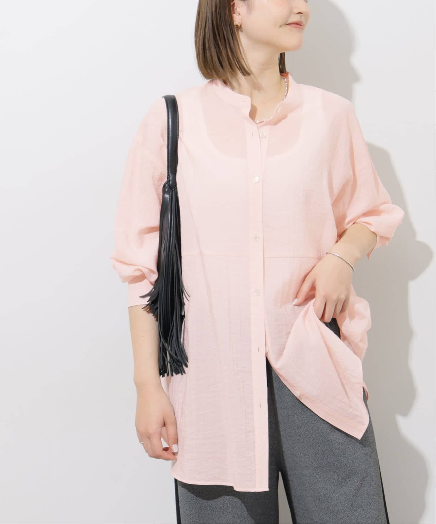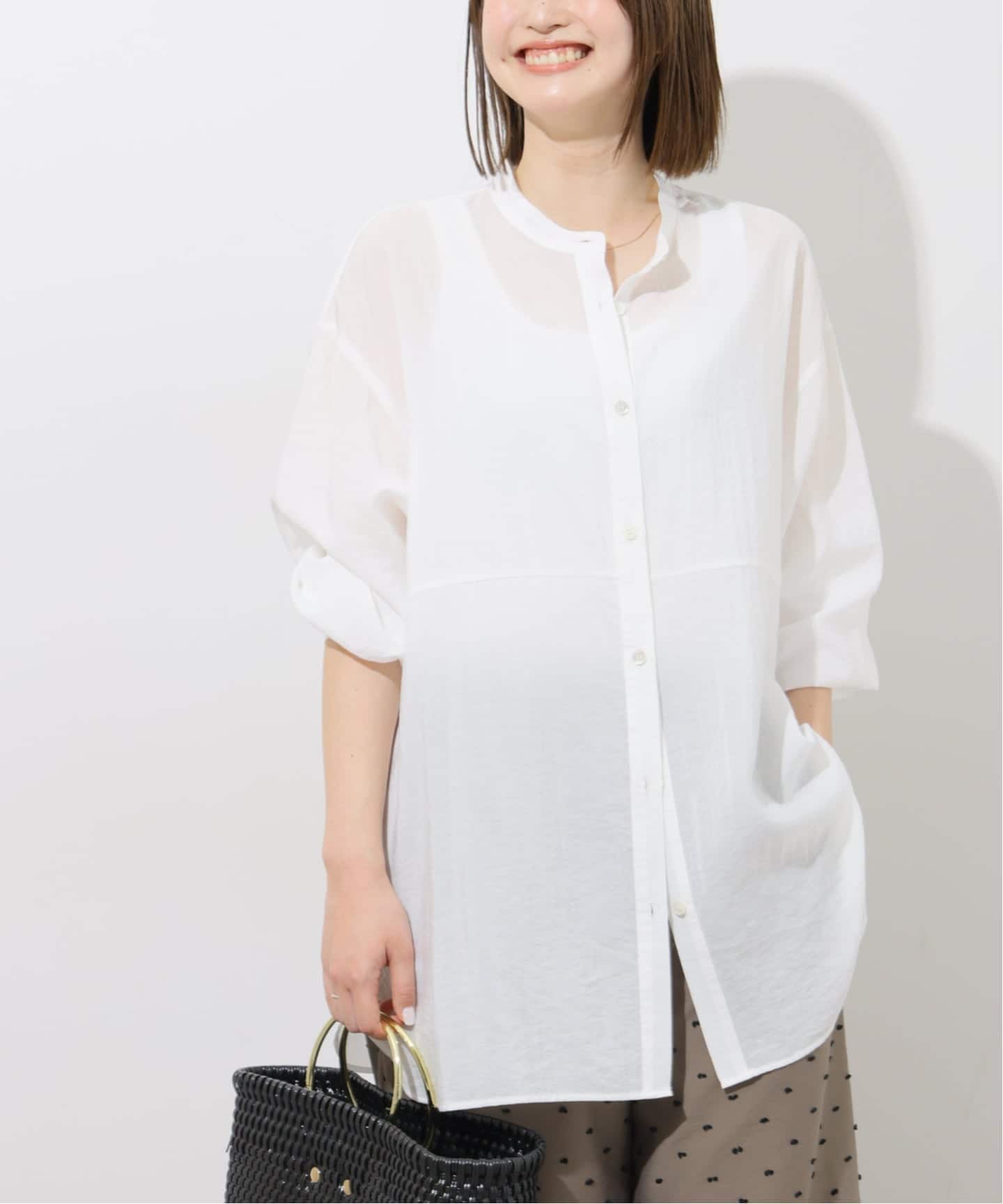 ウエストの切り替えが自然なメリハリを生み、スタイルアップを叶える軽やかシャツ!落ち感のある素材でラインをきれいに見せつつ、ヒップが隠れる丈で安心感も◎ホワイトに加えて、ブルーやピンクの春色で、季節感のある着こなしがお楽しみいただける今季注目の1枚です!