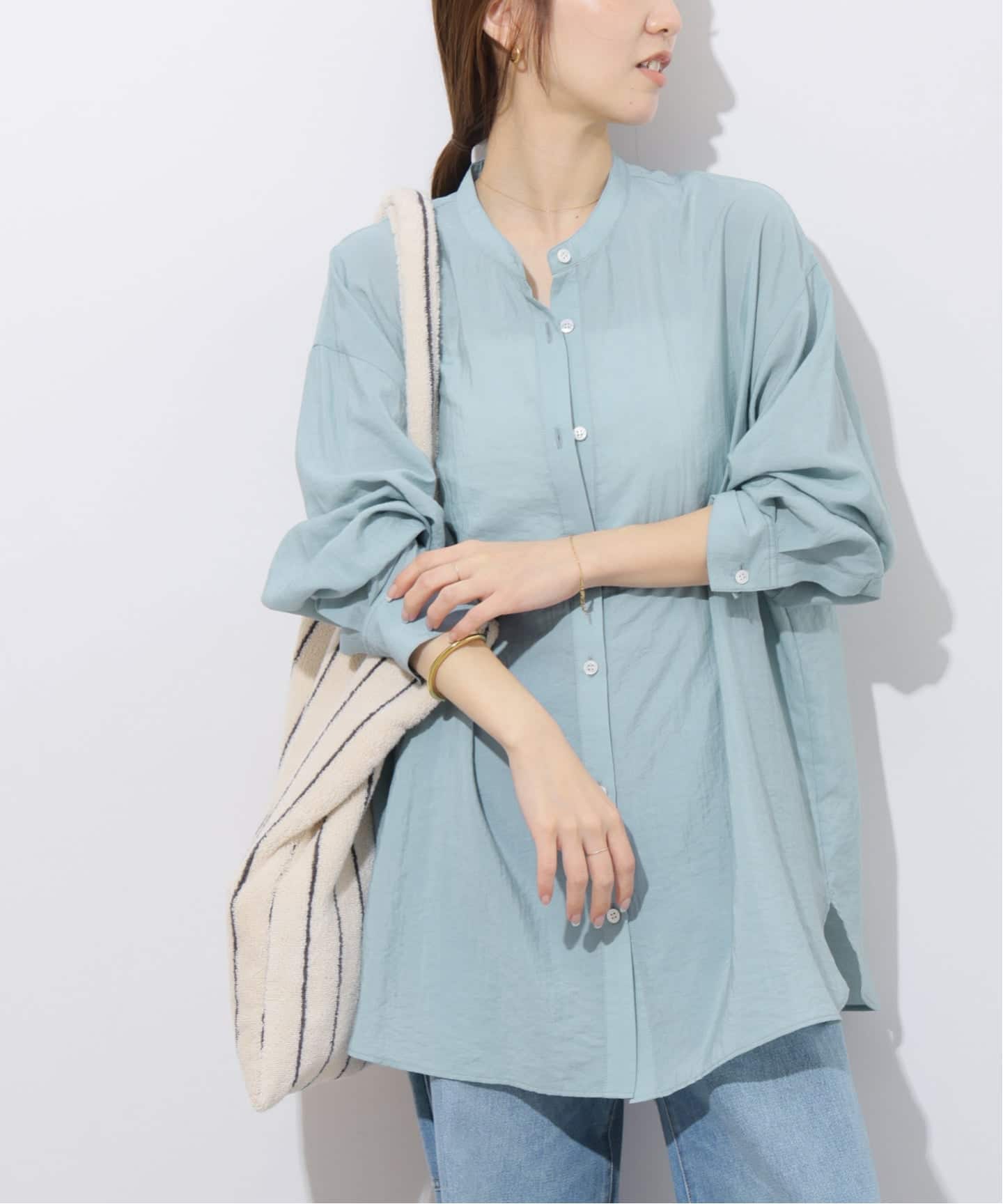 ほんのり透け感のある軽やかな素材が魅力のストライプシャツ。ゆとりのあるシルエットで体型をさりげなくカバーしつつ、抜け感のある着こなしに!1枚着から羽織りまで活躍し、ON/OFFどちらでも着回せる頼れる大人シャツ!着こなしに春夏らしい軽やかさを出したい方におすすめです◎