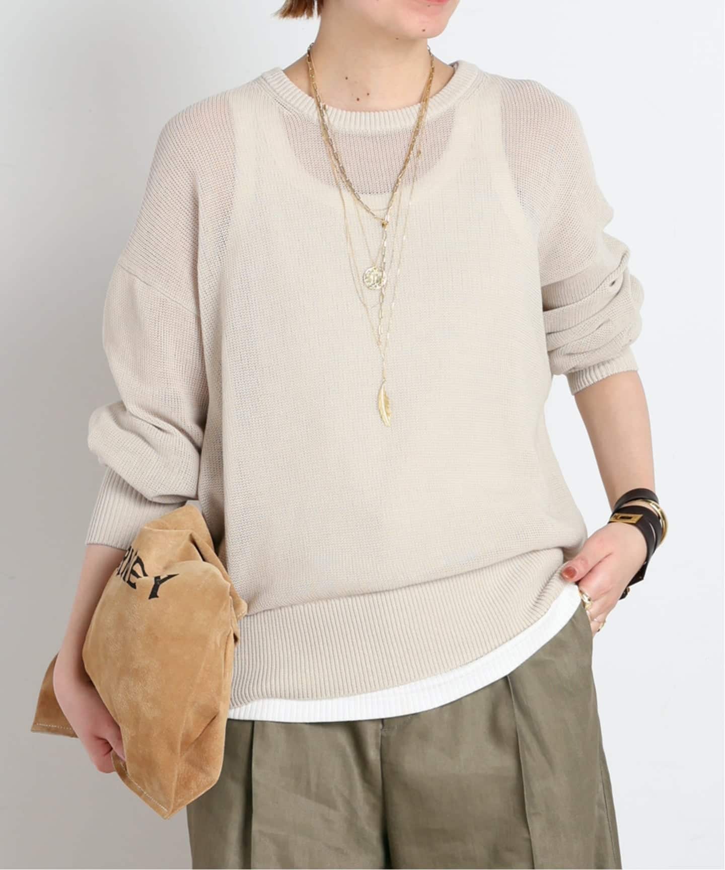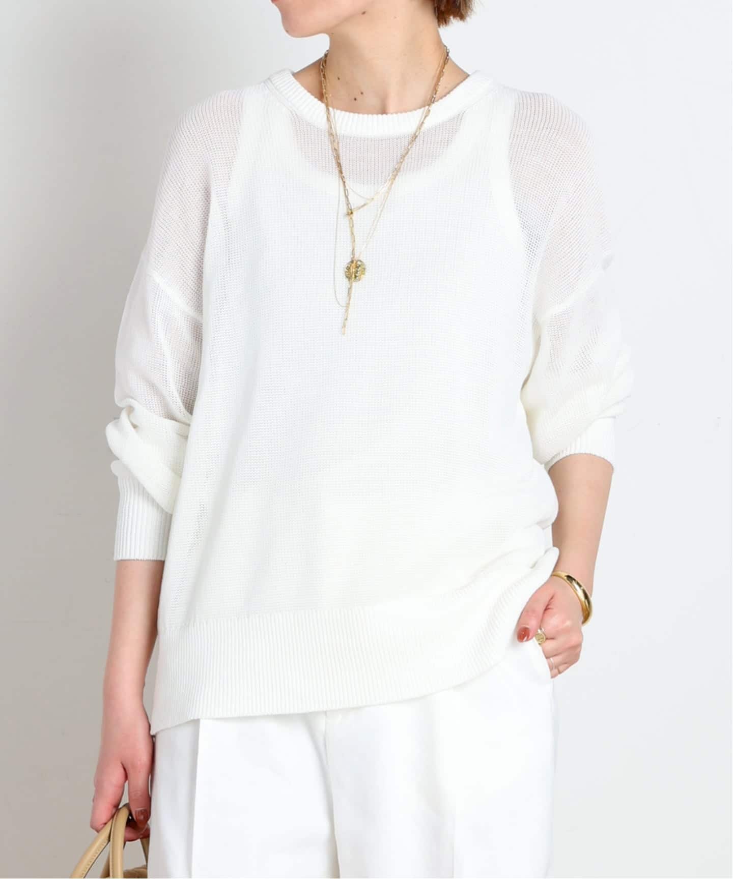 プルオーバーと同じ、清涼感のある綿素材のサマーニットです。