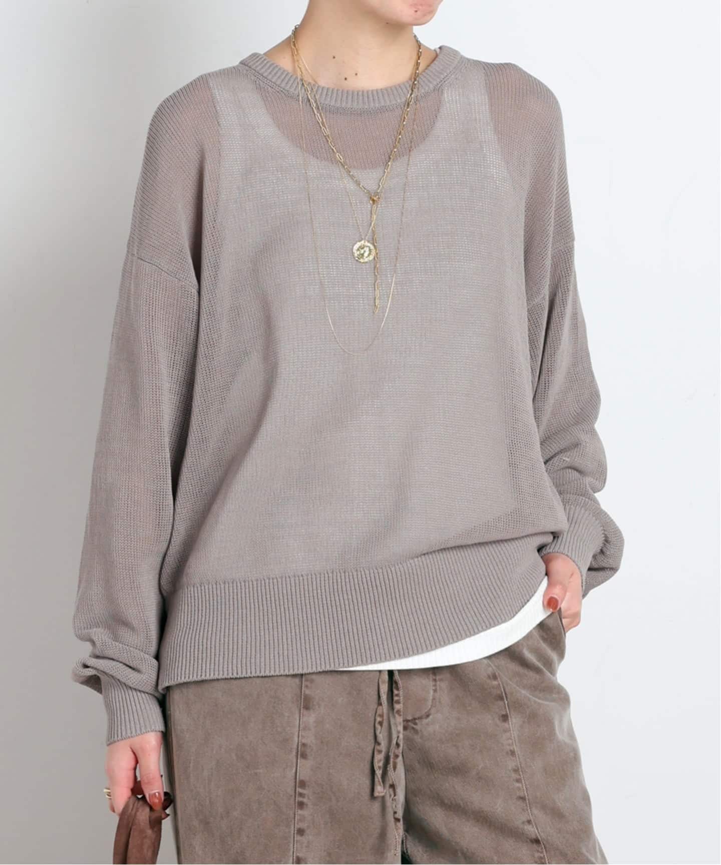 シャリ感のある綿糸を編立て、さらっとしていて初夏まで着れるアイテムです。