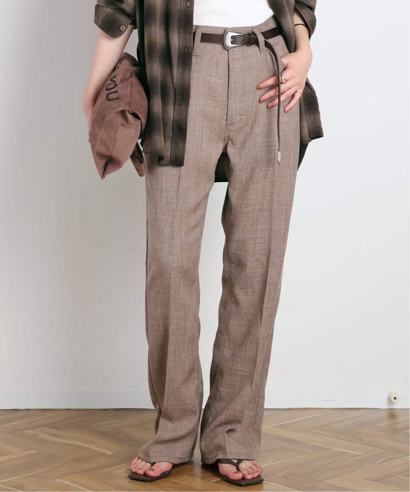 シーズンらしさがありながらも、リネンと比較してシワになりづらく、夏のシンプルなトップスにも映えてくれる。