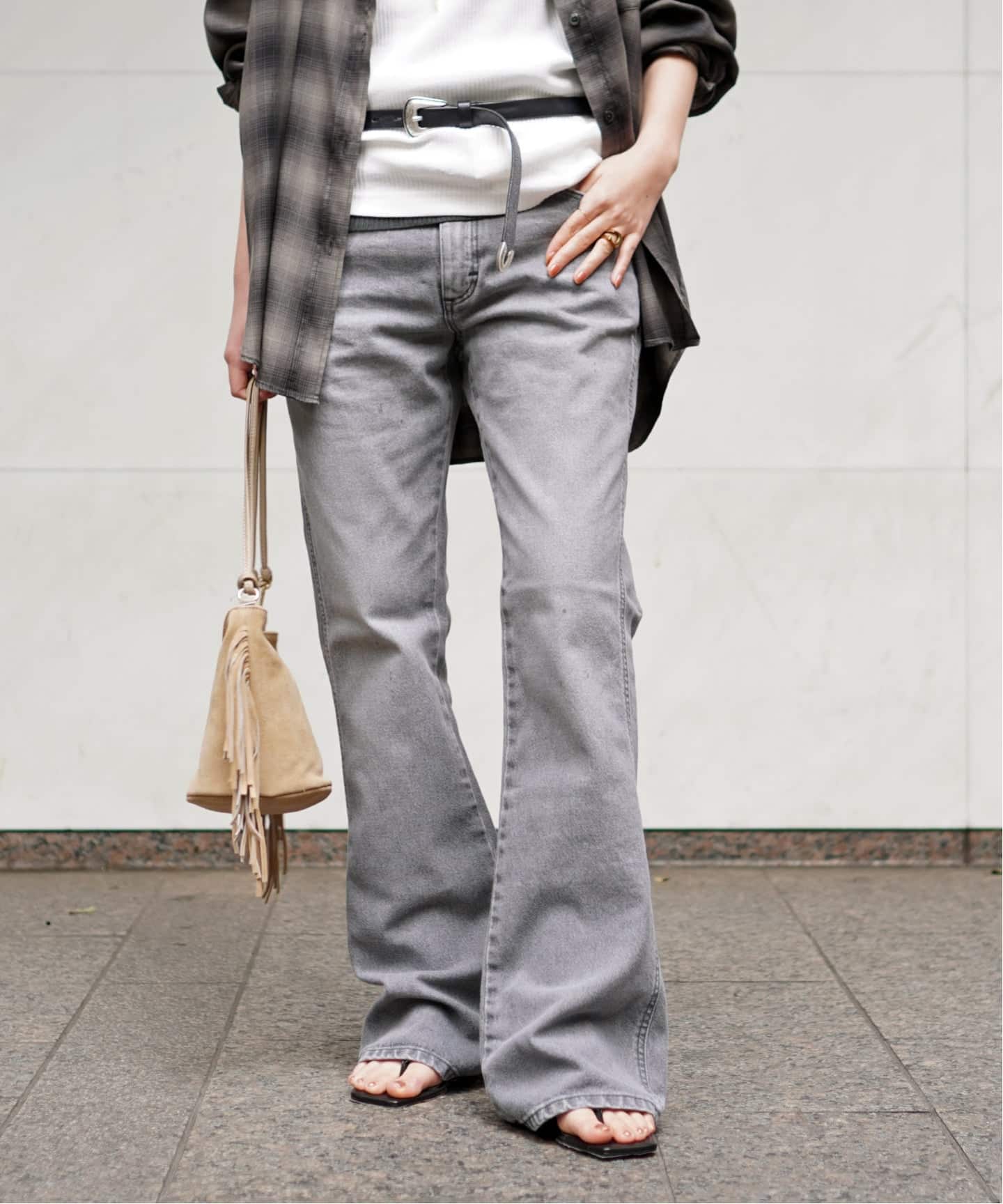 ひざ下から裾に向かって、長めの丈感が新鮮。