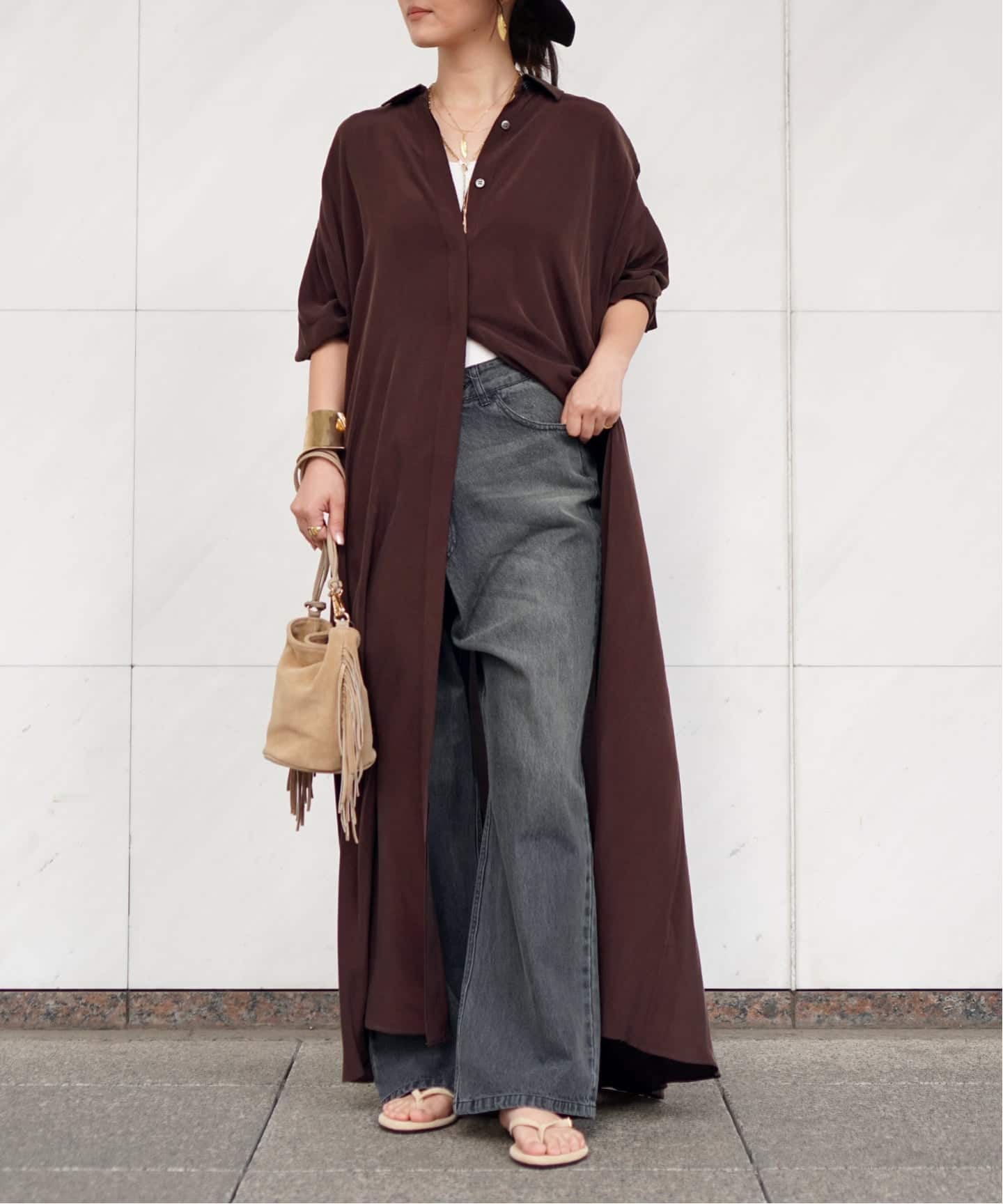 1枚でも、パンツをレイヤードして羽織りとしても。