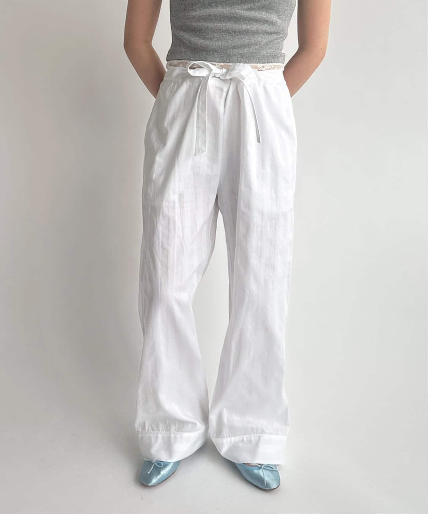 パジャマパンツのウエストリボンをしっかりと見せてメリハリを。