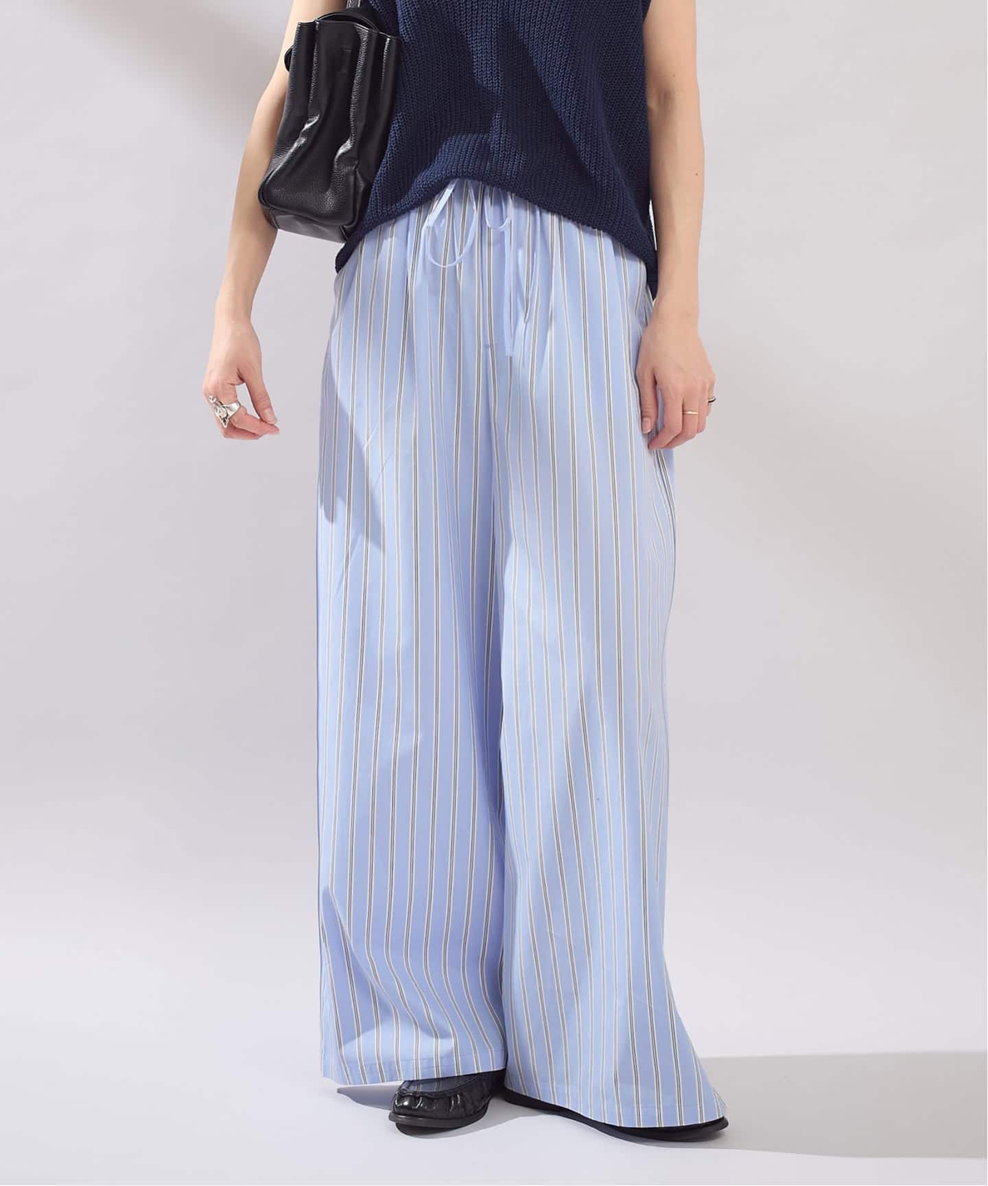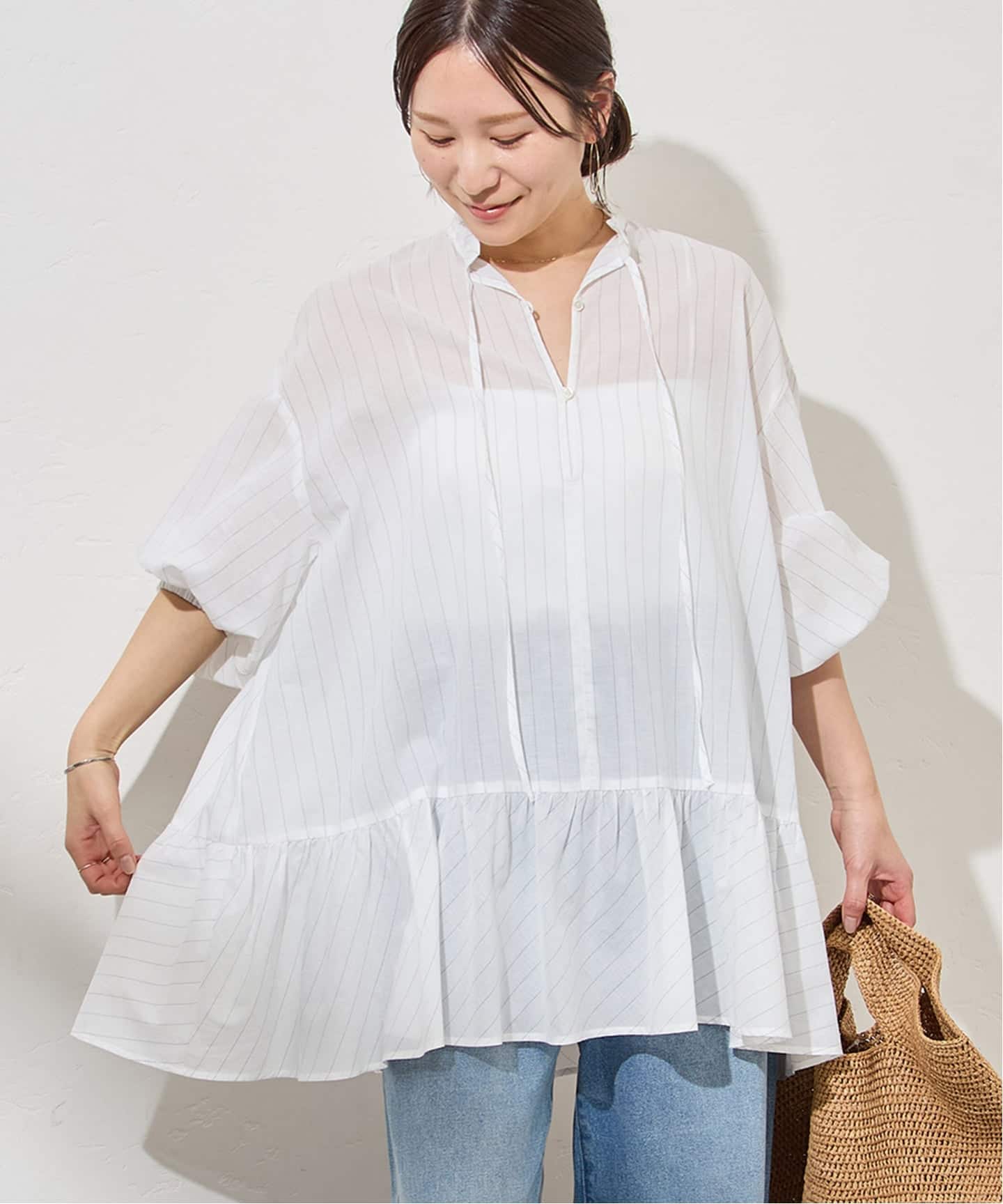 ピンストライプボイルAラインチュニックブラウス