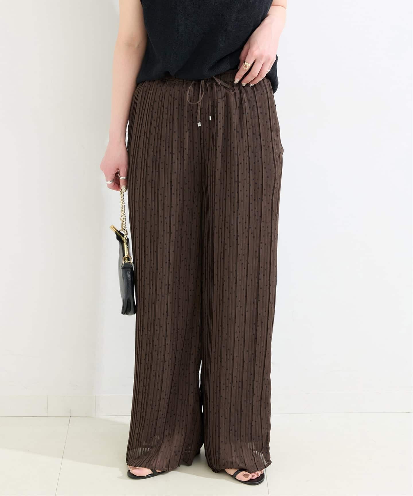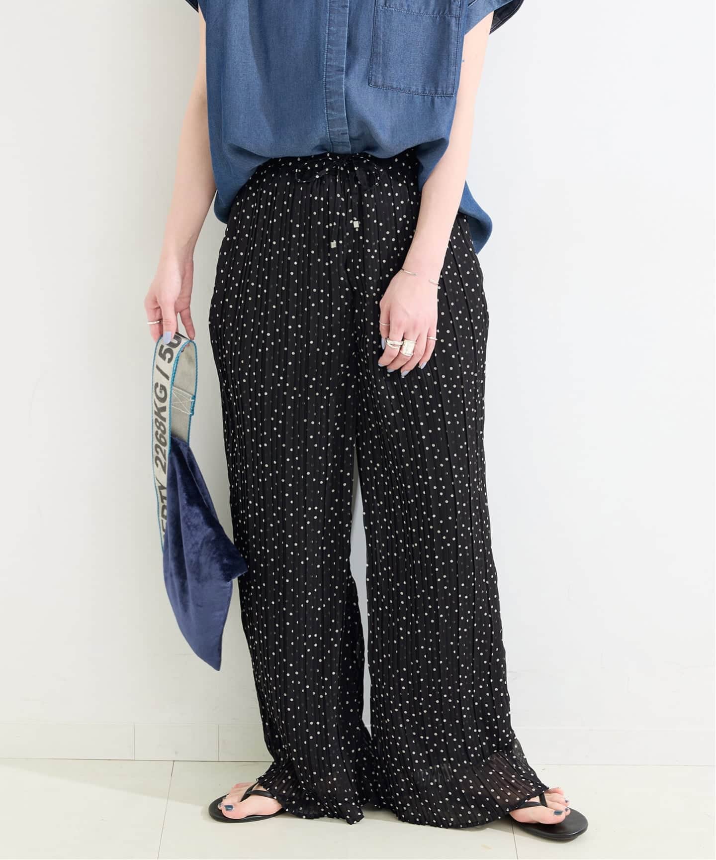 ランダムドット柄がフェミニンな総柄シアーイージーパンツ。