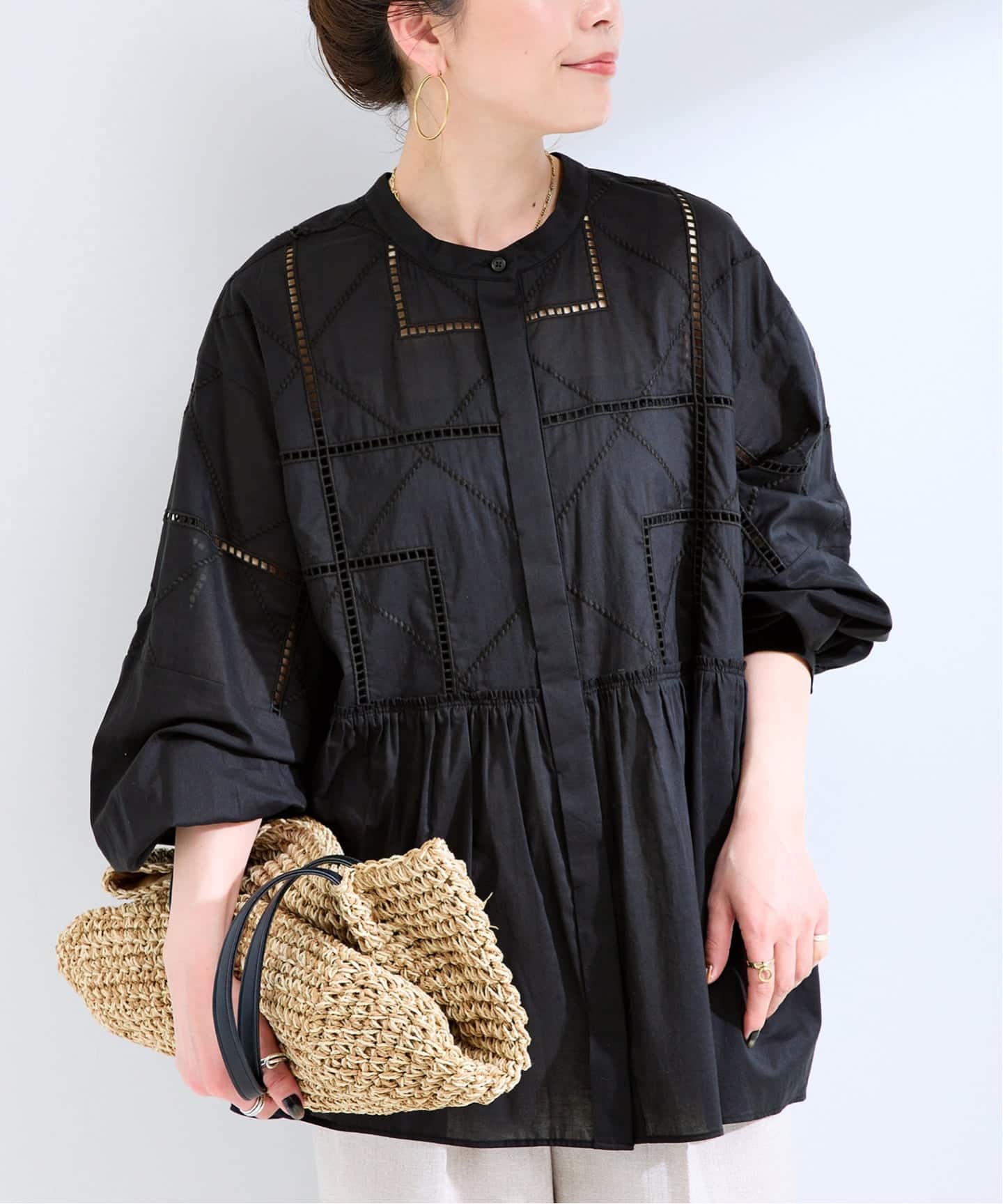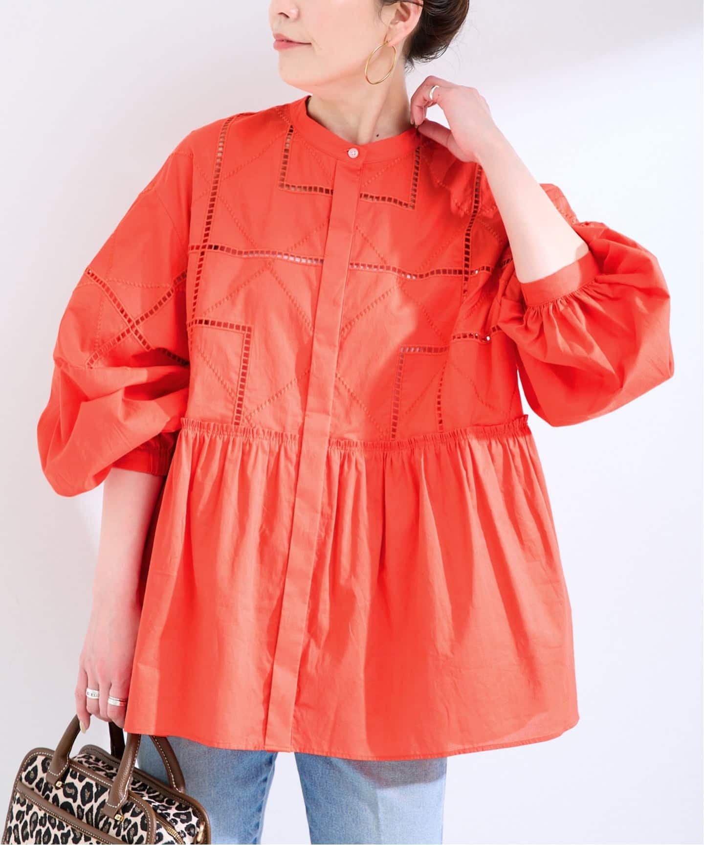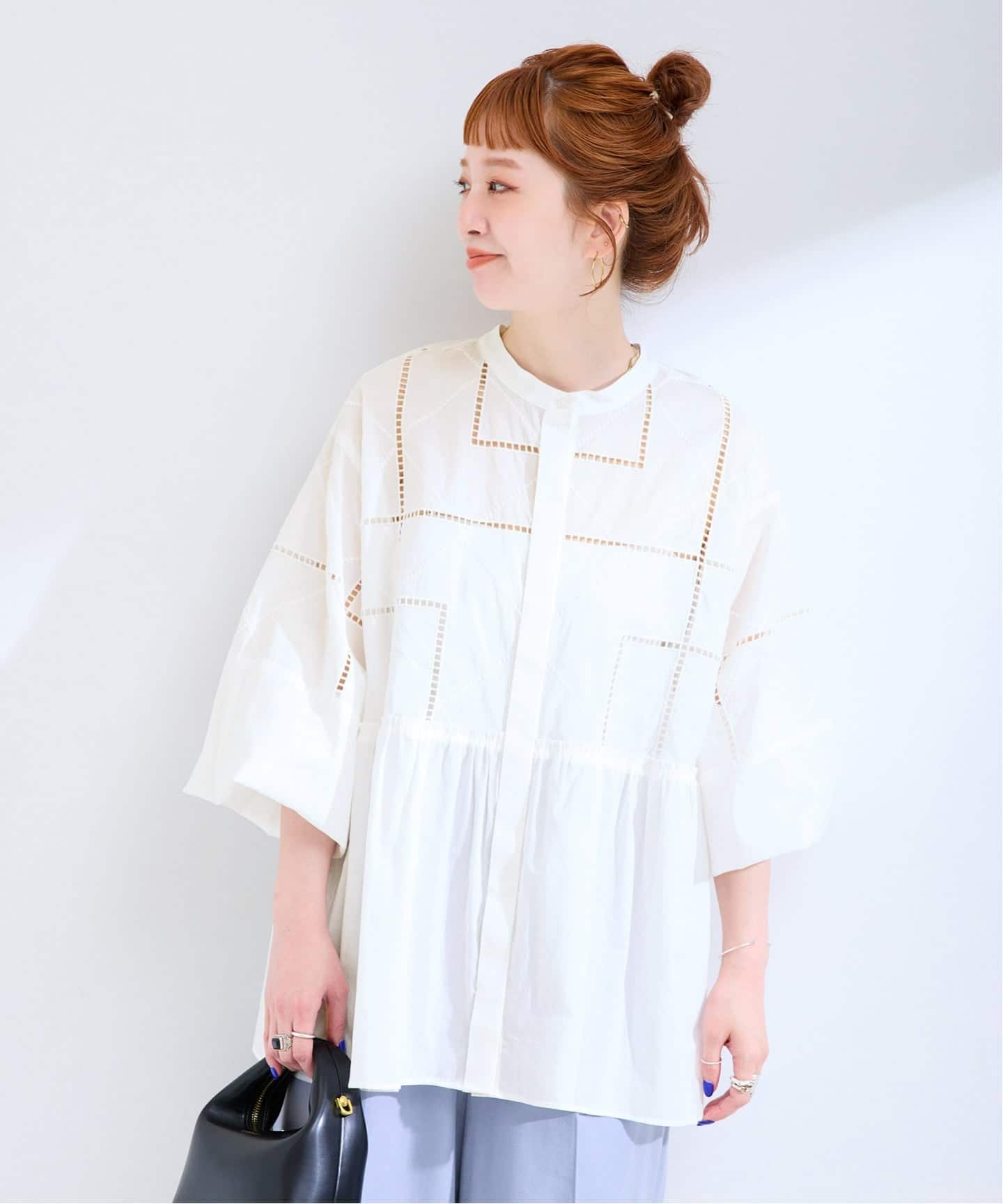 カットワーク刺繍が程よい透け感をプラスする2WAYブラウス。