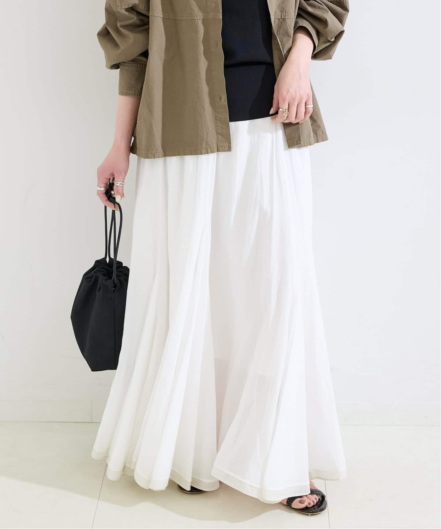 スカート見えするワイドなシルエットが動きがあり、裾はレース特有のスカラップが雰囲気漂うディティールがポイントに。