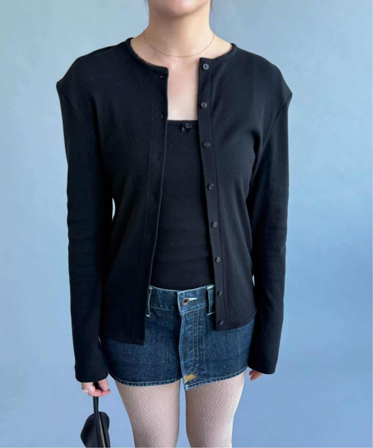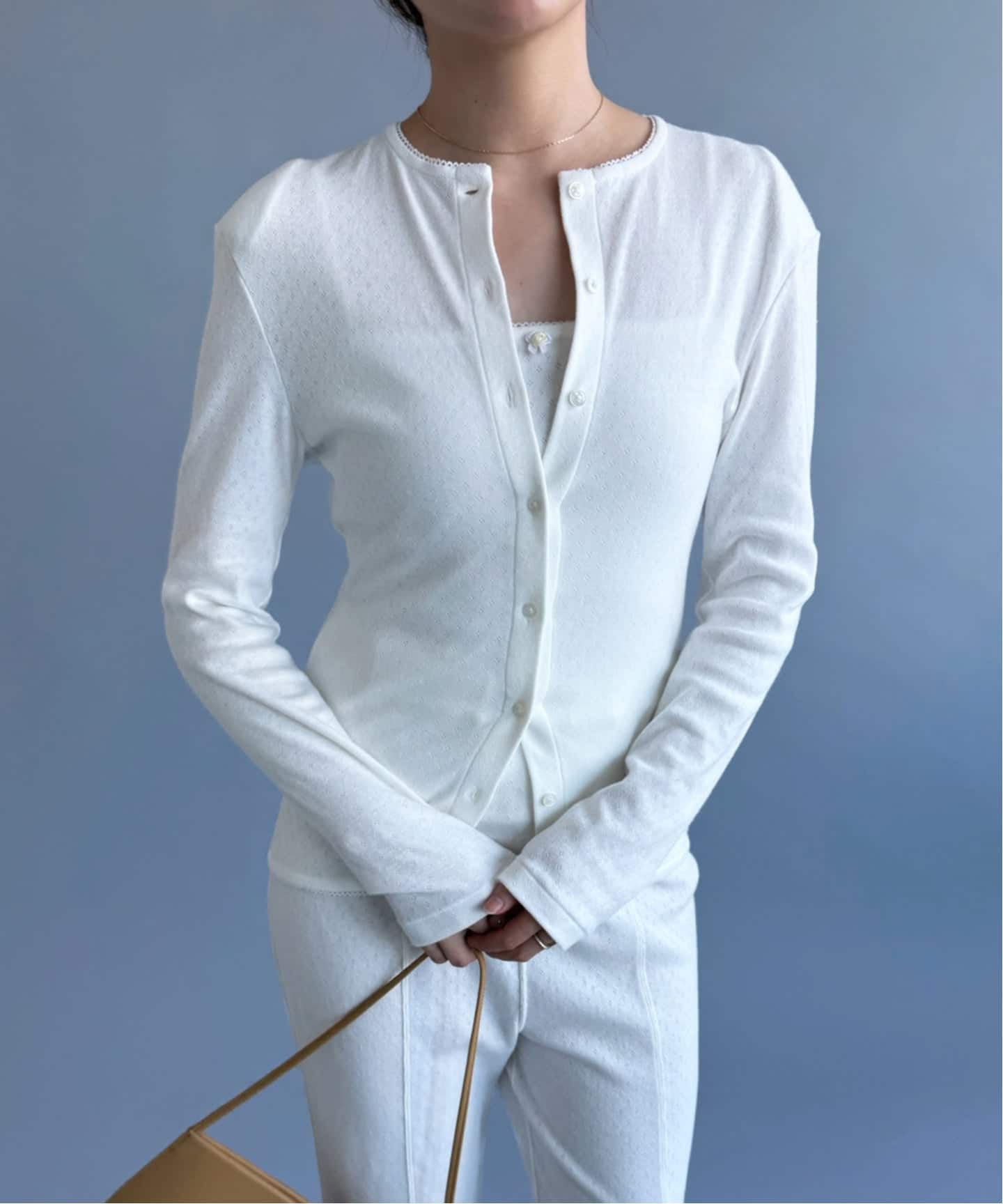 カーディガンのような、カットソージャケットのような、セットで着るとパジャマのような。そんな可愛い一枚です。