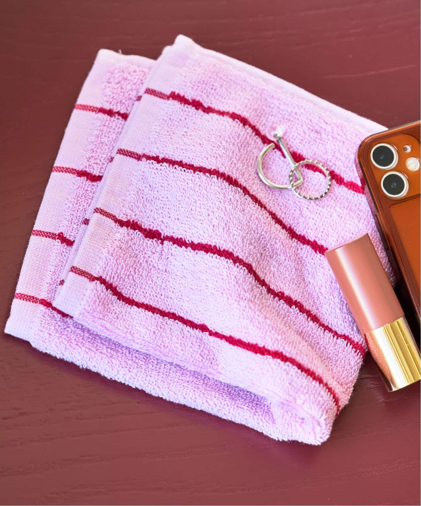 鮮やかなカラーリングがバッグの中でポイントになるハンドタオル。