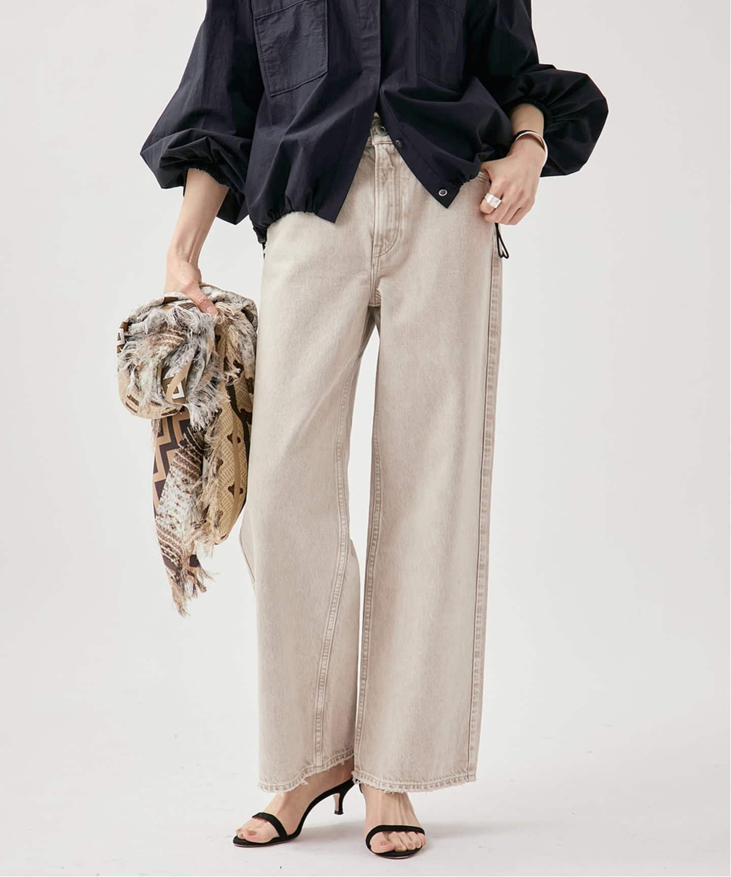 ✔ コンパクトな着丈で、ワイドパンツやスカートとも好相性