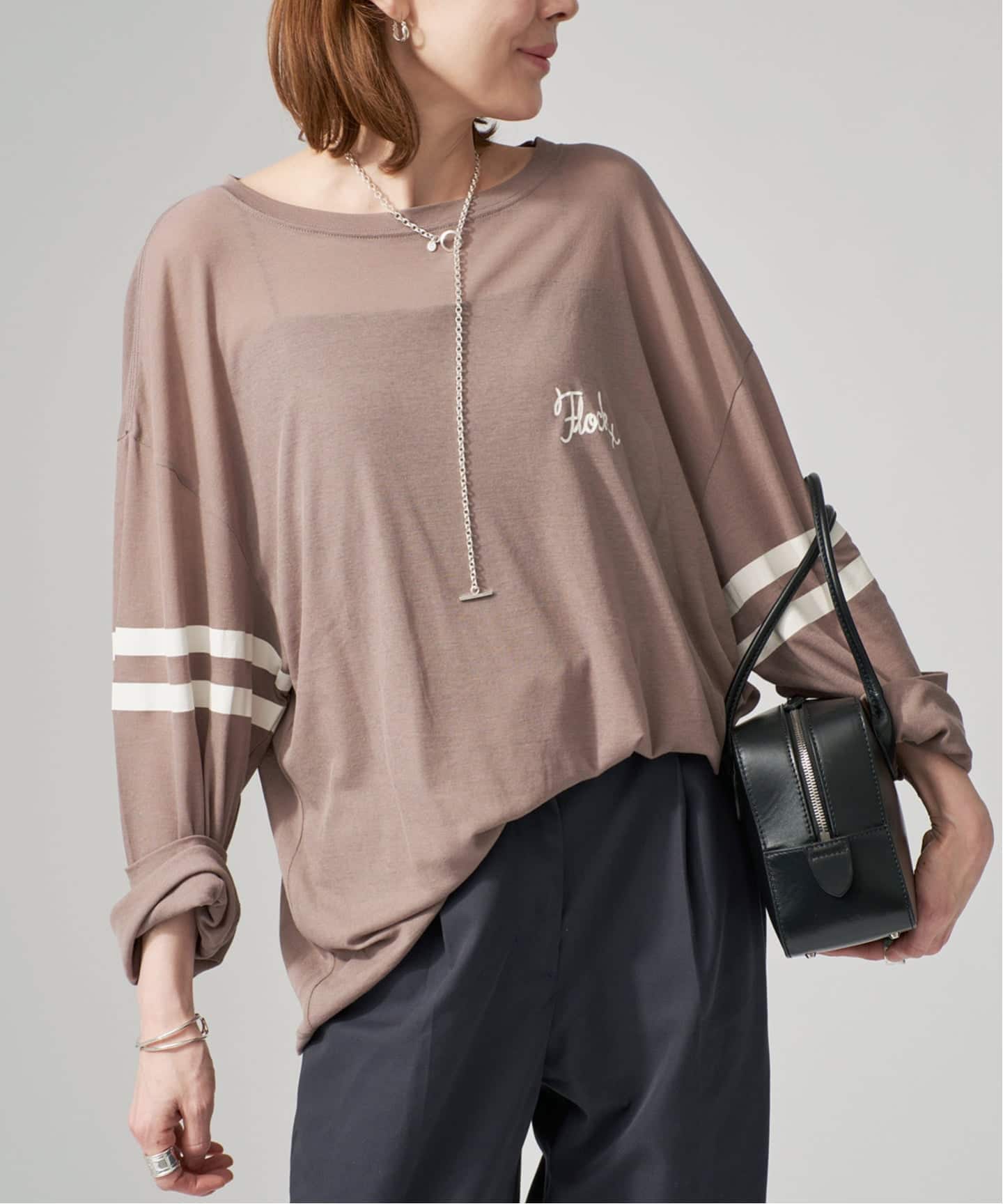 ✔ 柔らかなカラーが装いを優しくまとめ、きれいめにもカジュアルにも対応