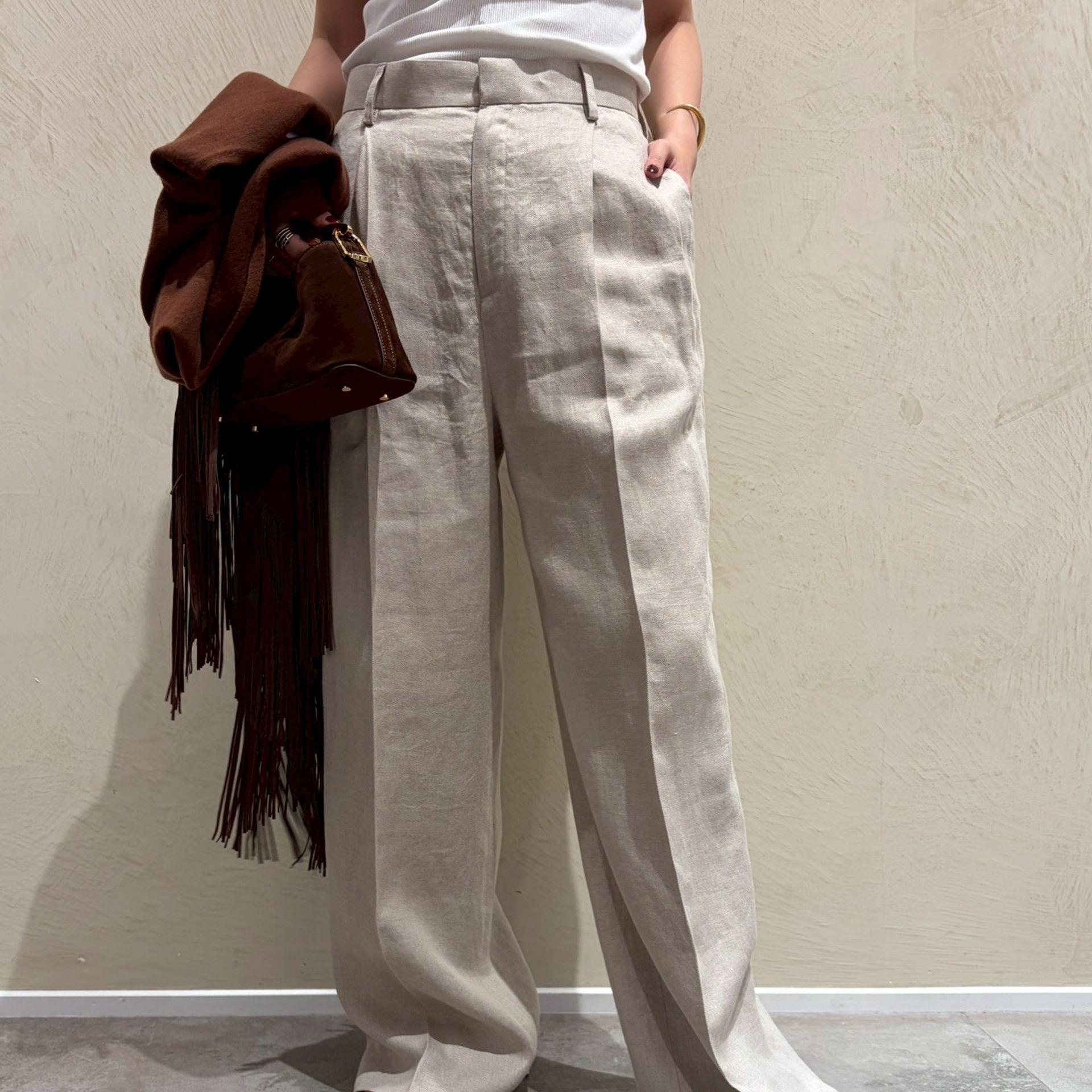 たっぷりとしたボリュームが涼し気なタックパンツ。