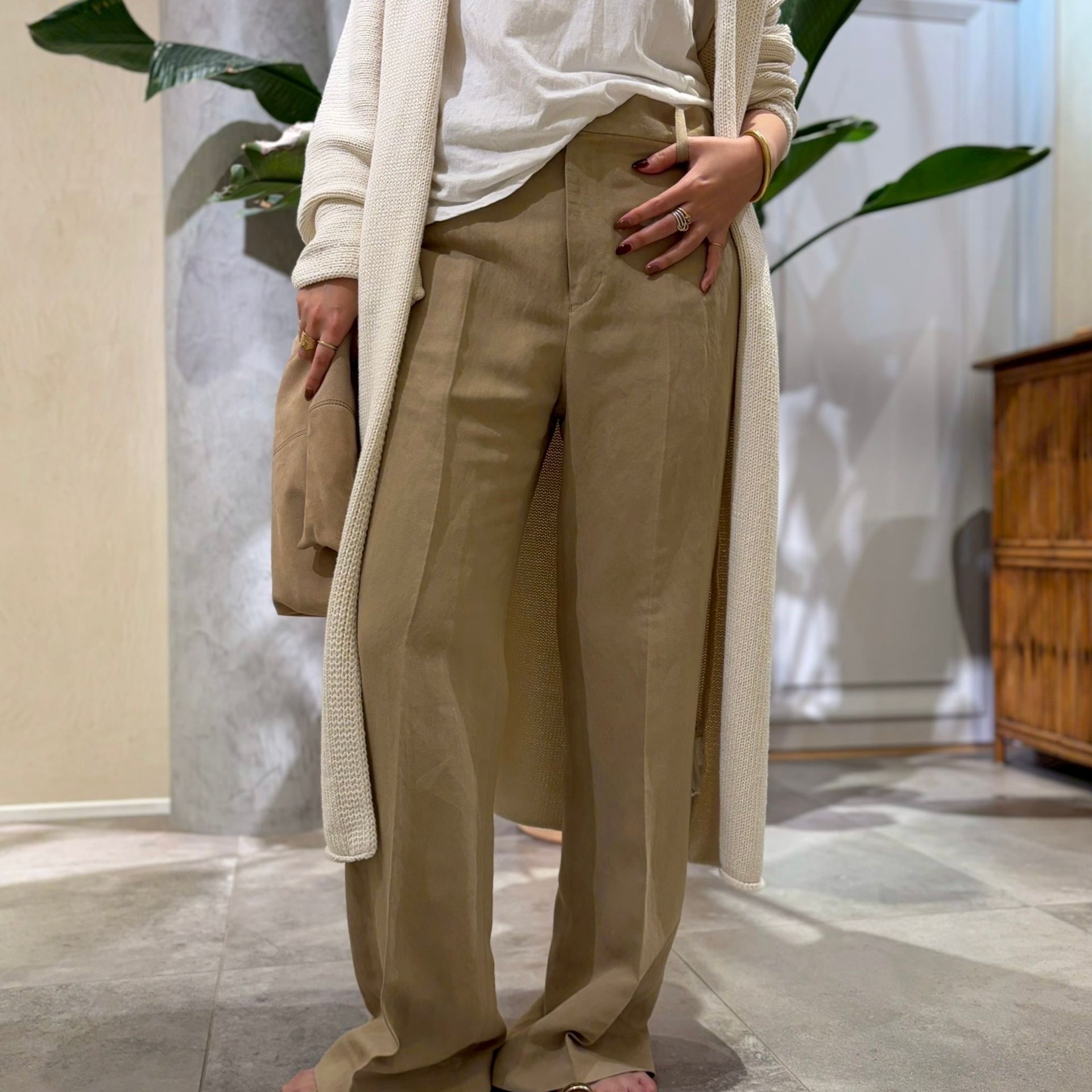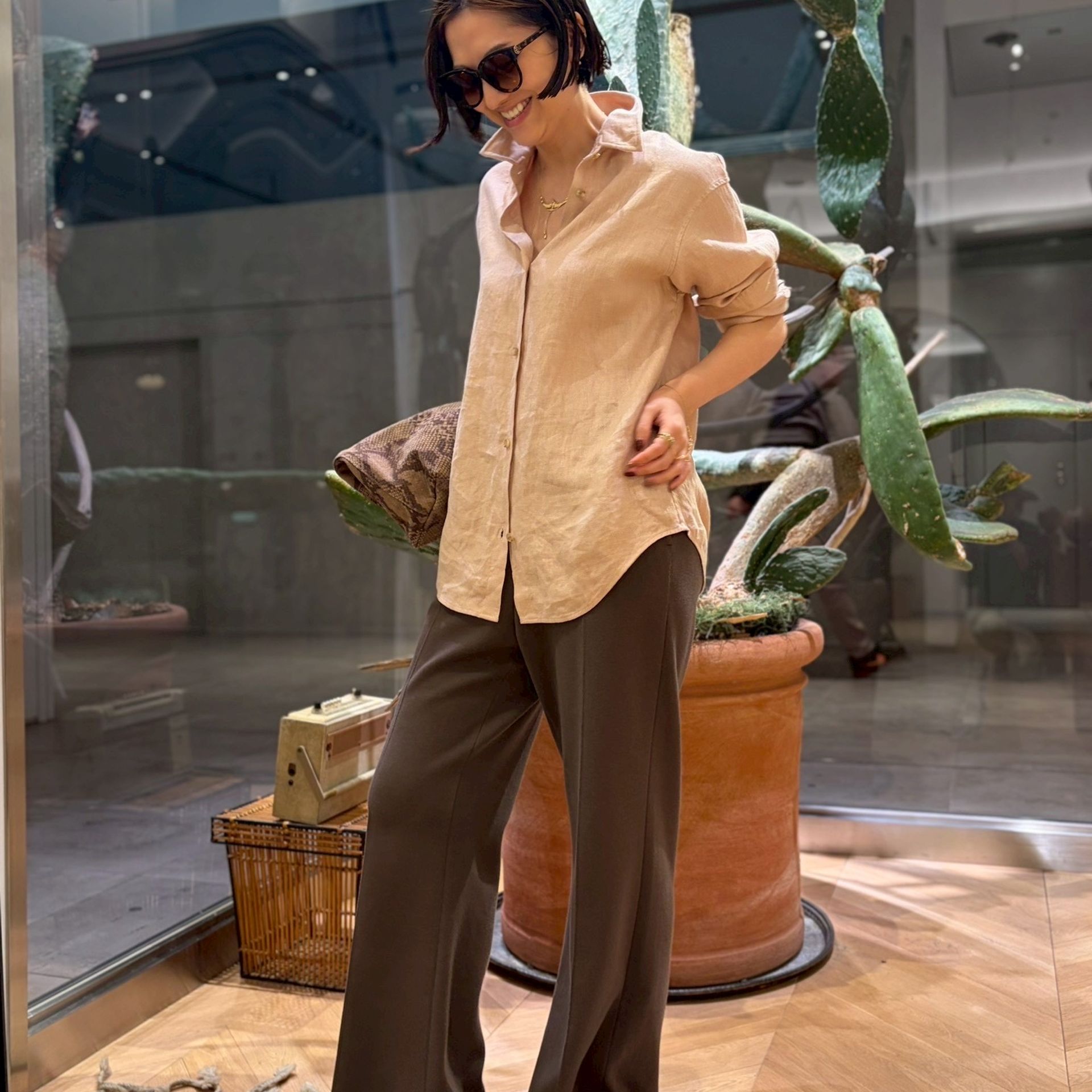 リネンとレーヨンのミックスなので、ナチュラルになりすぎず洗練された顔に仕上がっています。