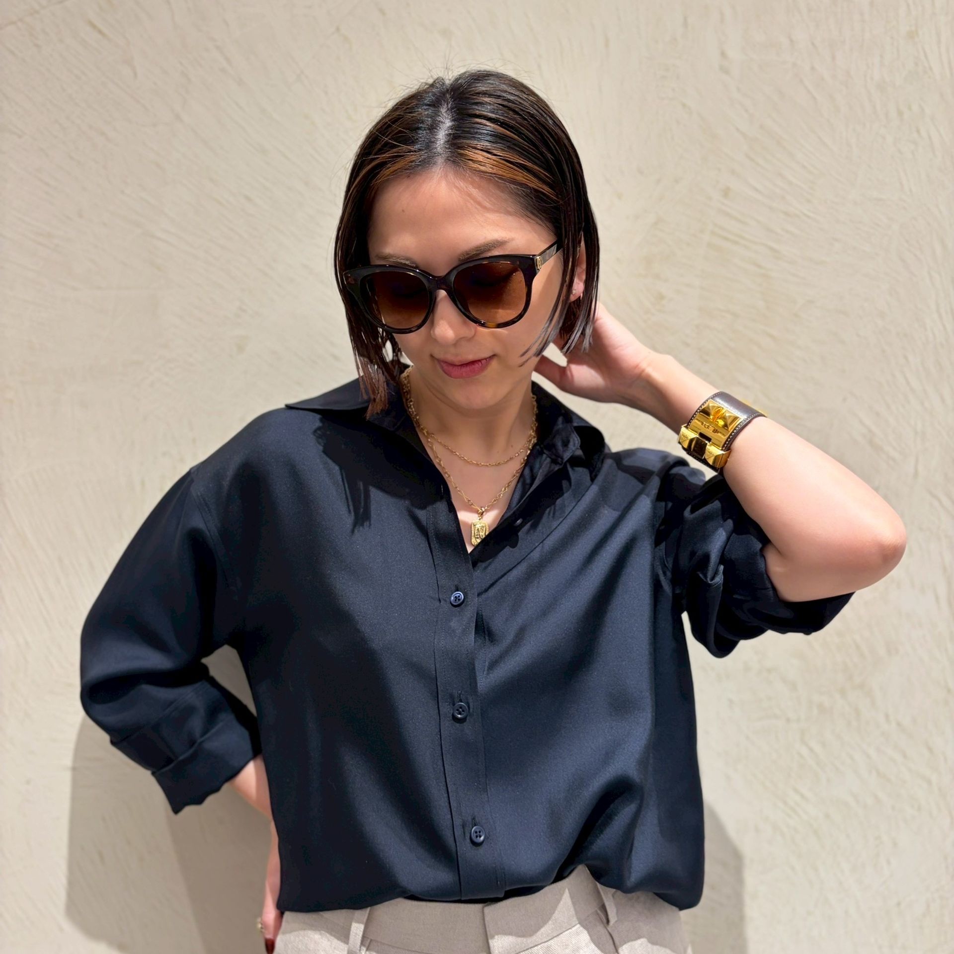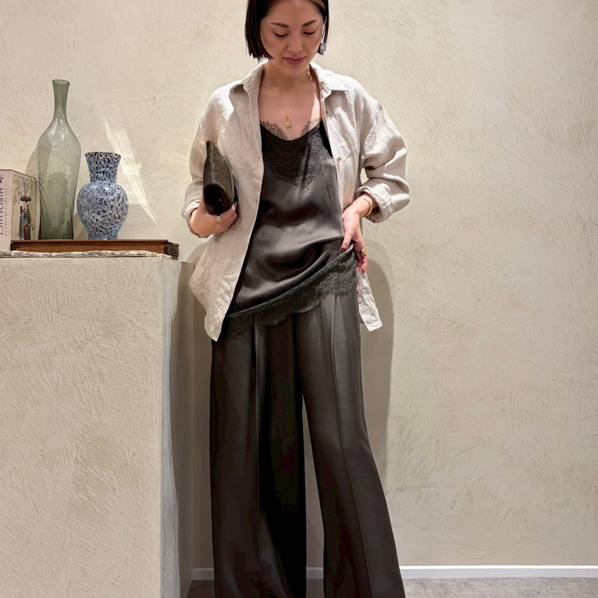 私だったらシルクシャツでラグジュアリーな品と艶を添えて着てみたい。