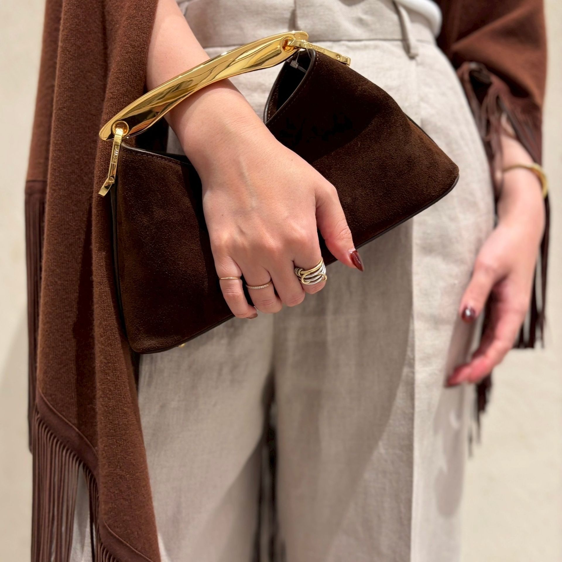 ELLEMEのBAGはハンドルがジュエリーのよう。持ち方もこんな風にアレンジしたい!