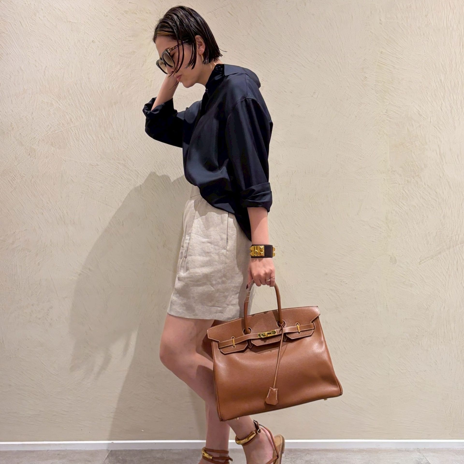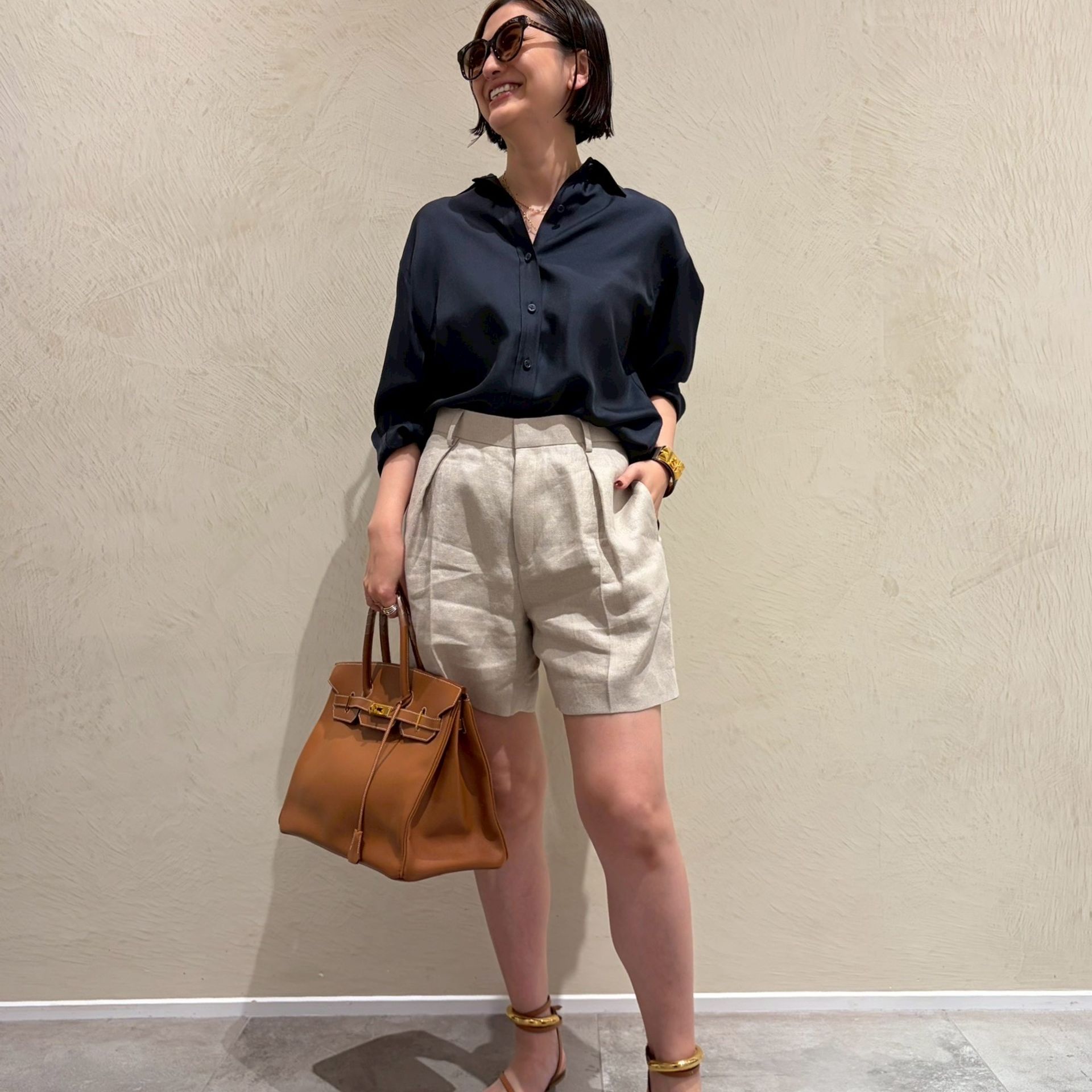 立体感の出るリネンのショーツの力を借りて、輪郭のあるスタイリングが出来るのは嬉しいですね。