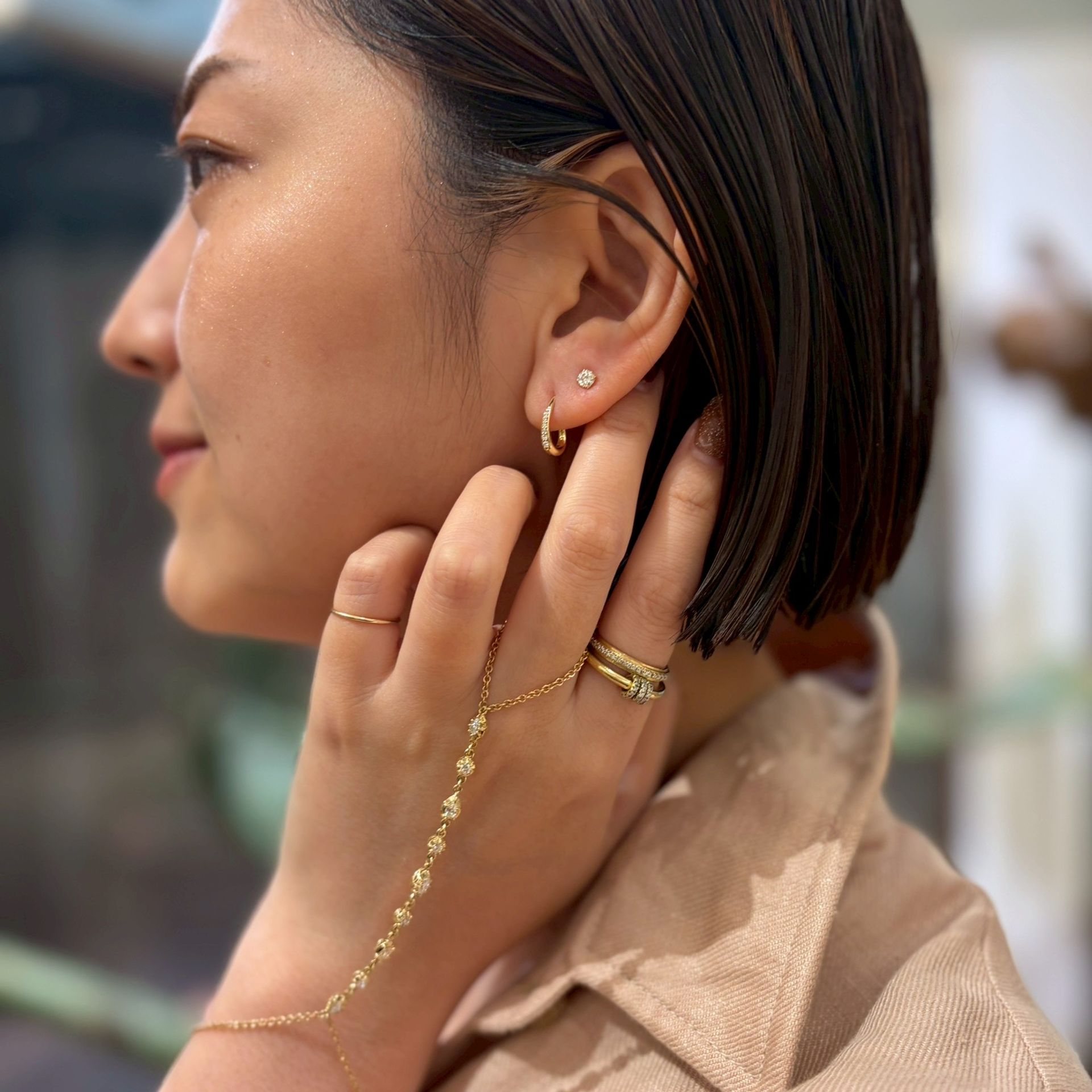 隣に光るタイヤモンドのスタッズピアスも侮れません。